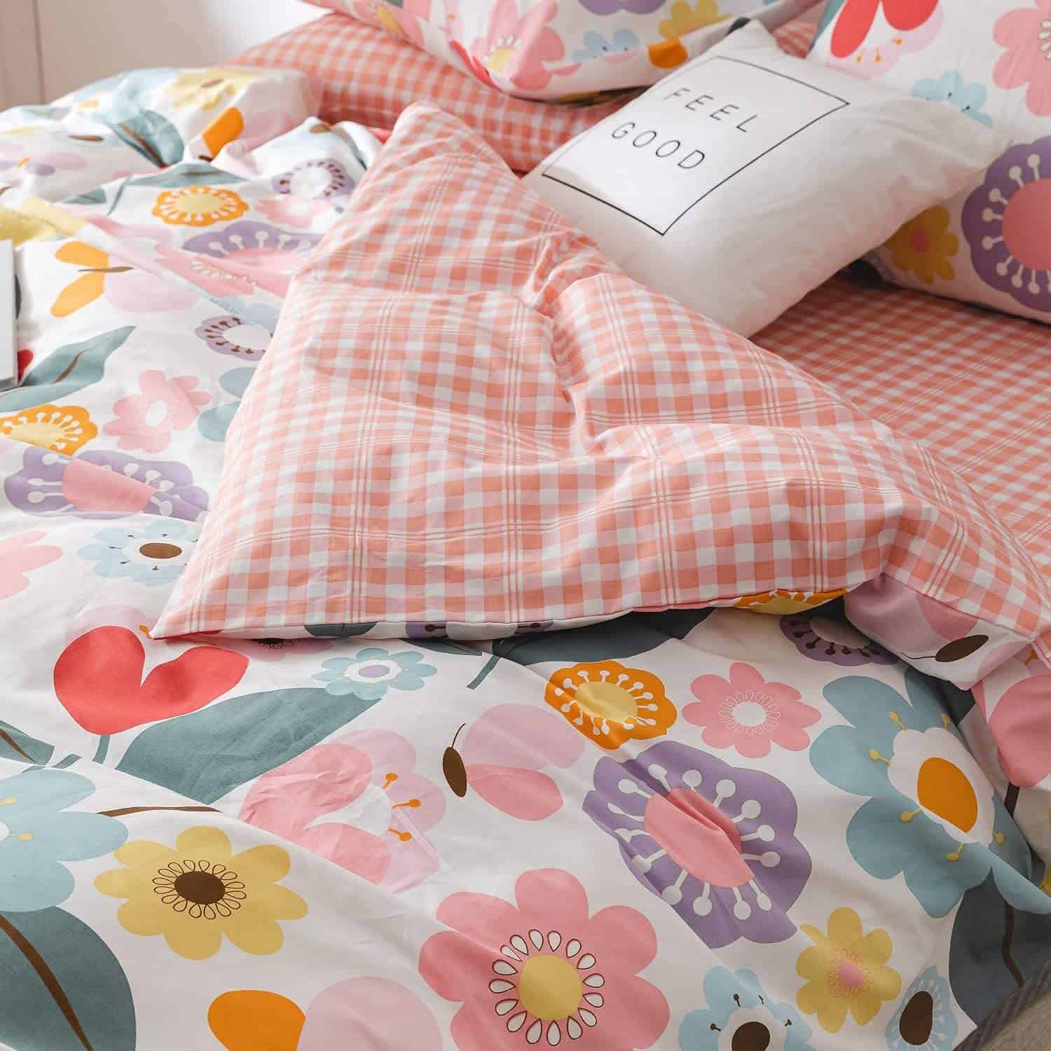 Tela de Algodón 100% Natural. Calidad Hotelera, Ligera, Tela Densa, Suave y Celestial, Transpirable, Duradera y Fácil de Cuidar. El juego de ropa de cama de flores de tamaño king utiliza materiales y técnicas de impresión de color saludables e inofensivas.