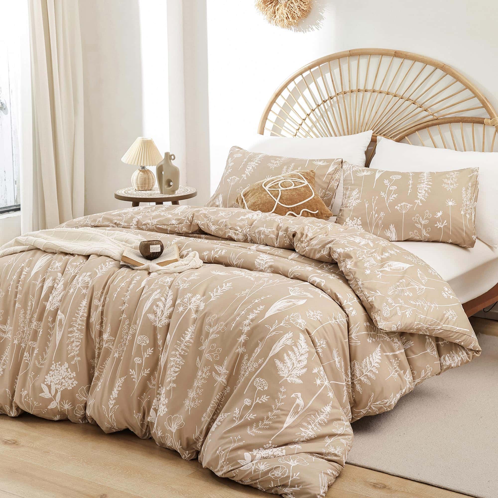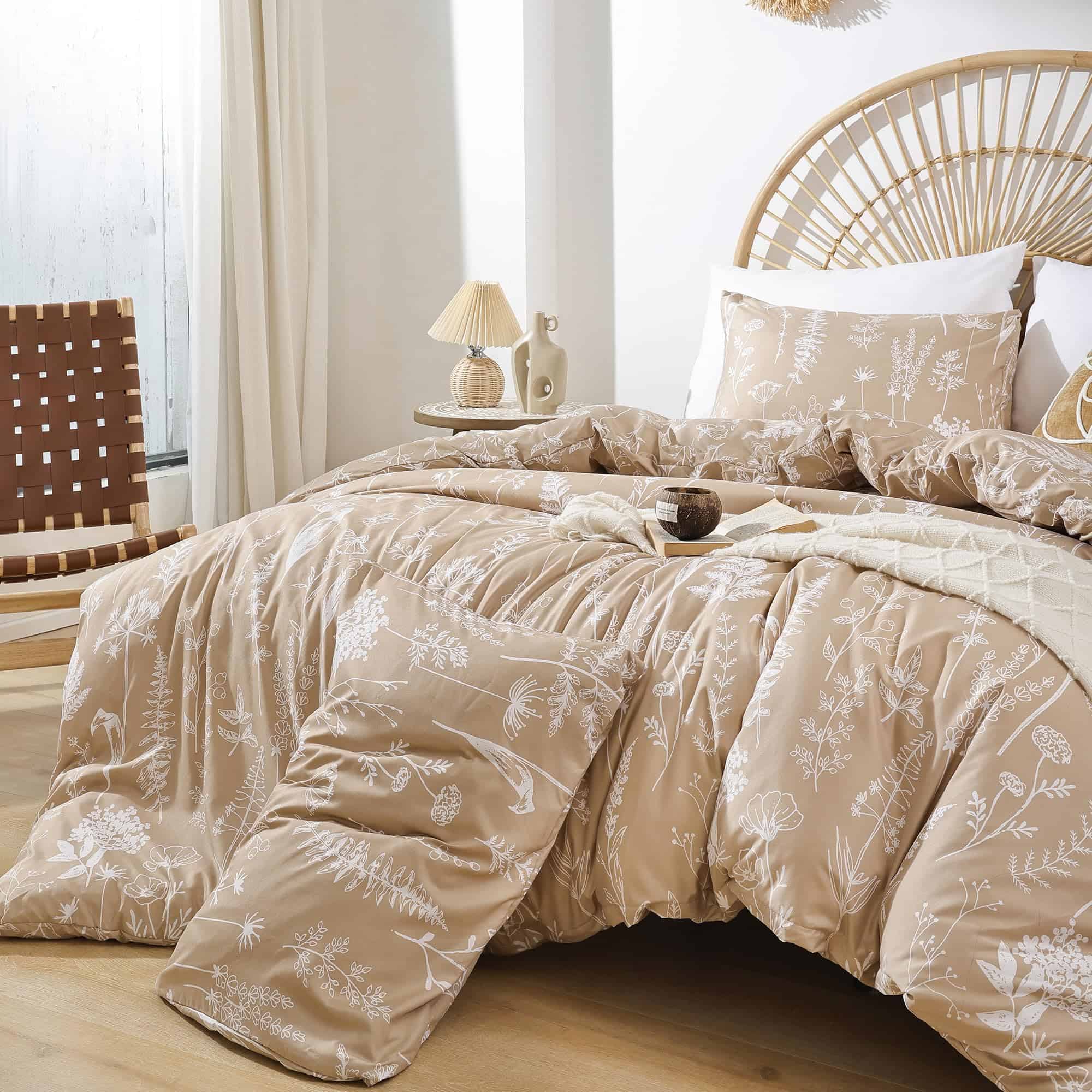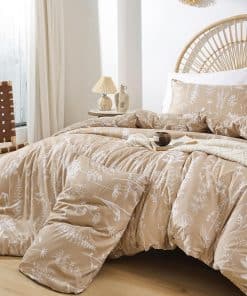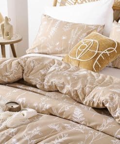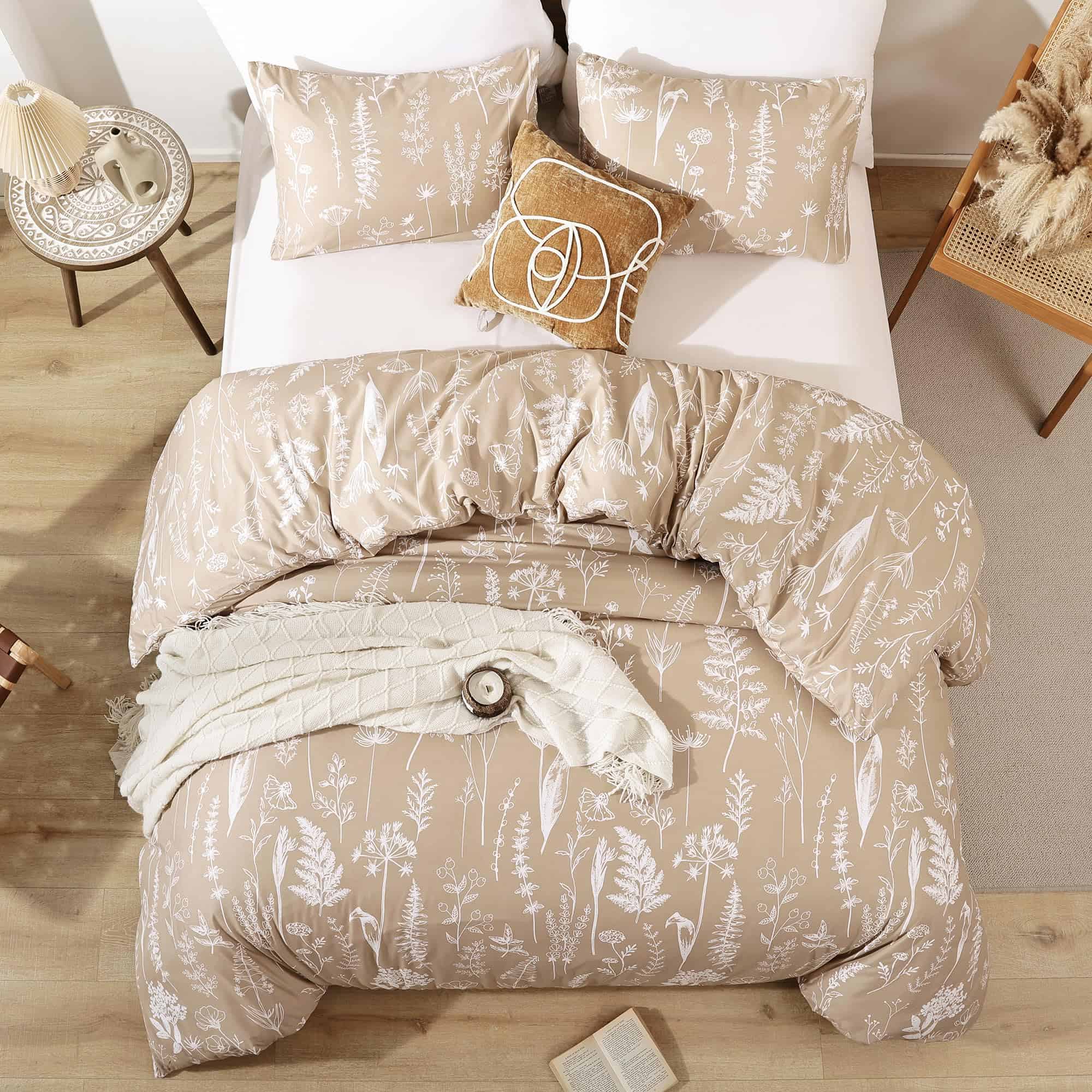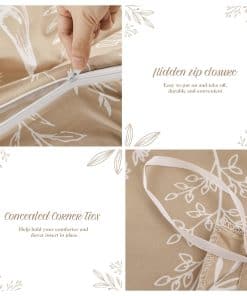 Esta funda nórdica de JANZAA en tamaño queen está diseñada para brindarte comodidad y estilo a tu habitación. Con un estampado floral de estilo botánico en color taupe, esta funda nórdica es perfecta para agregar un toque de naturaleza y elegancia a tu espacio. Hecha de microfibra cepillada de alta calidad, la funda nórdica es suave al tacto, transpirable y duradera, lo que garantiza que te sientas cómodo y relajado mientras descansas. El diseño reversible de la funda nórdica te permite cambiar la apariencia de tu habitación fácilmente. La funda nórdica viene con un cierre de cremallera oculto y cuatro lazos en las esquinas para mantener tu edredón en su lugar y protegerlo de la suciedad y los rasguños. El juego incluye una funda nórdica queen size y 2 fundas de almohada a juego para una apariencia coordinada. Además, el material de la funda nórdica es fácil de cuidar, ya que se puede lavar a máquina sin problemas. Asegura un buen descanso y una decoración elegante con esta funda nórdica floral de JANZAA.