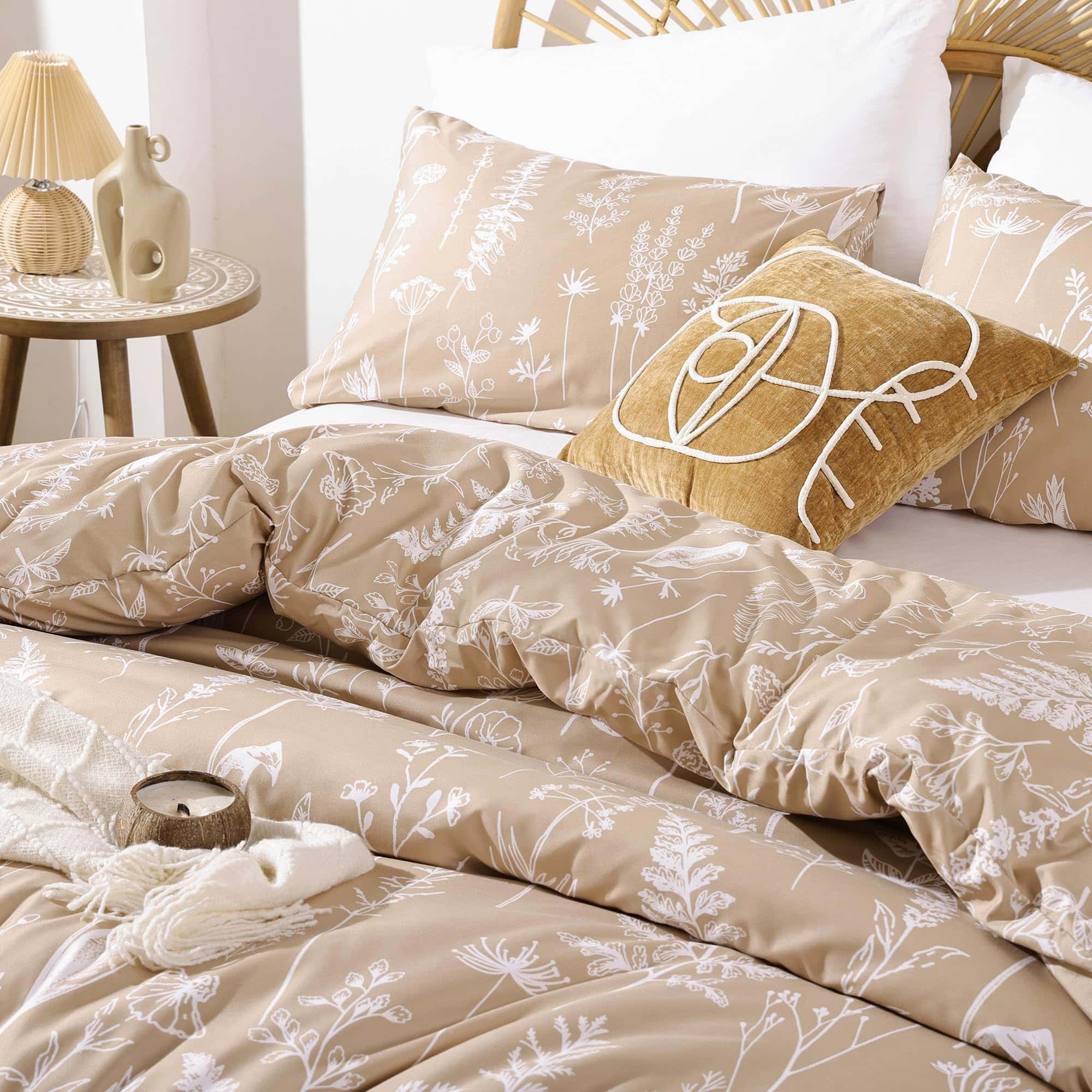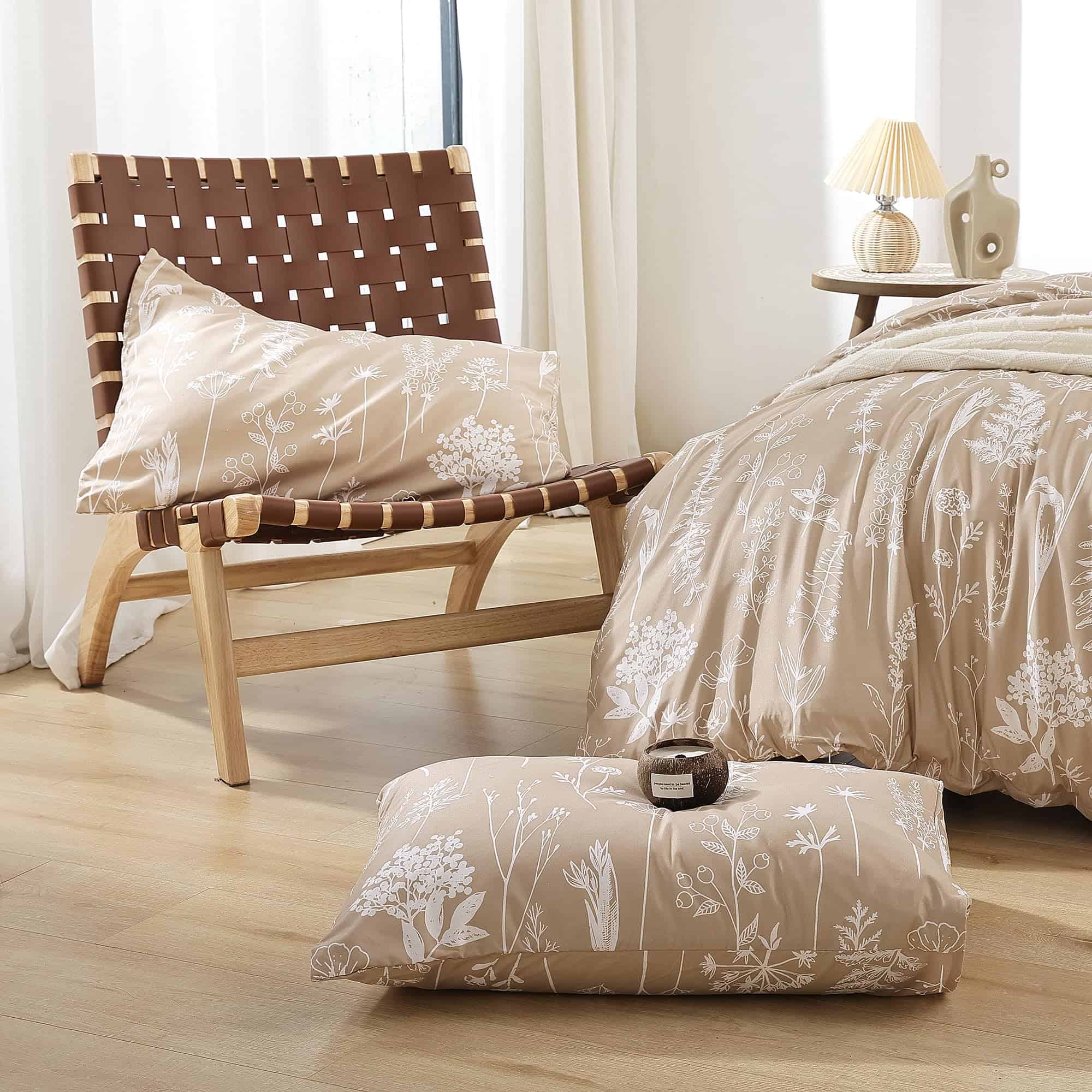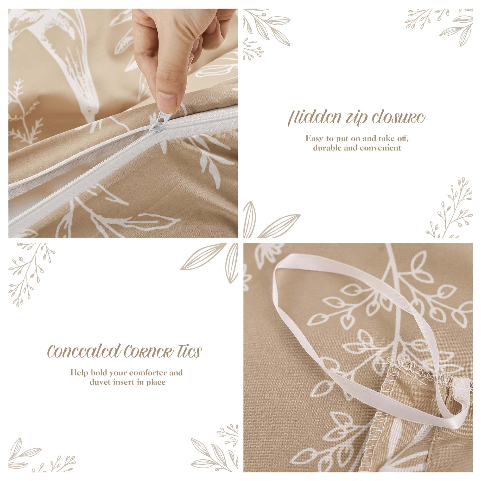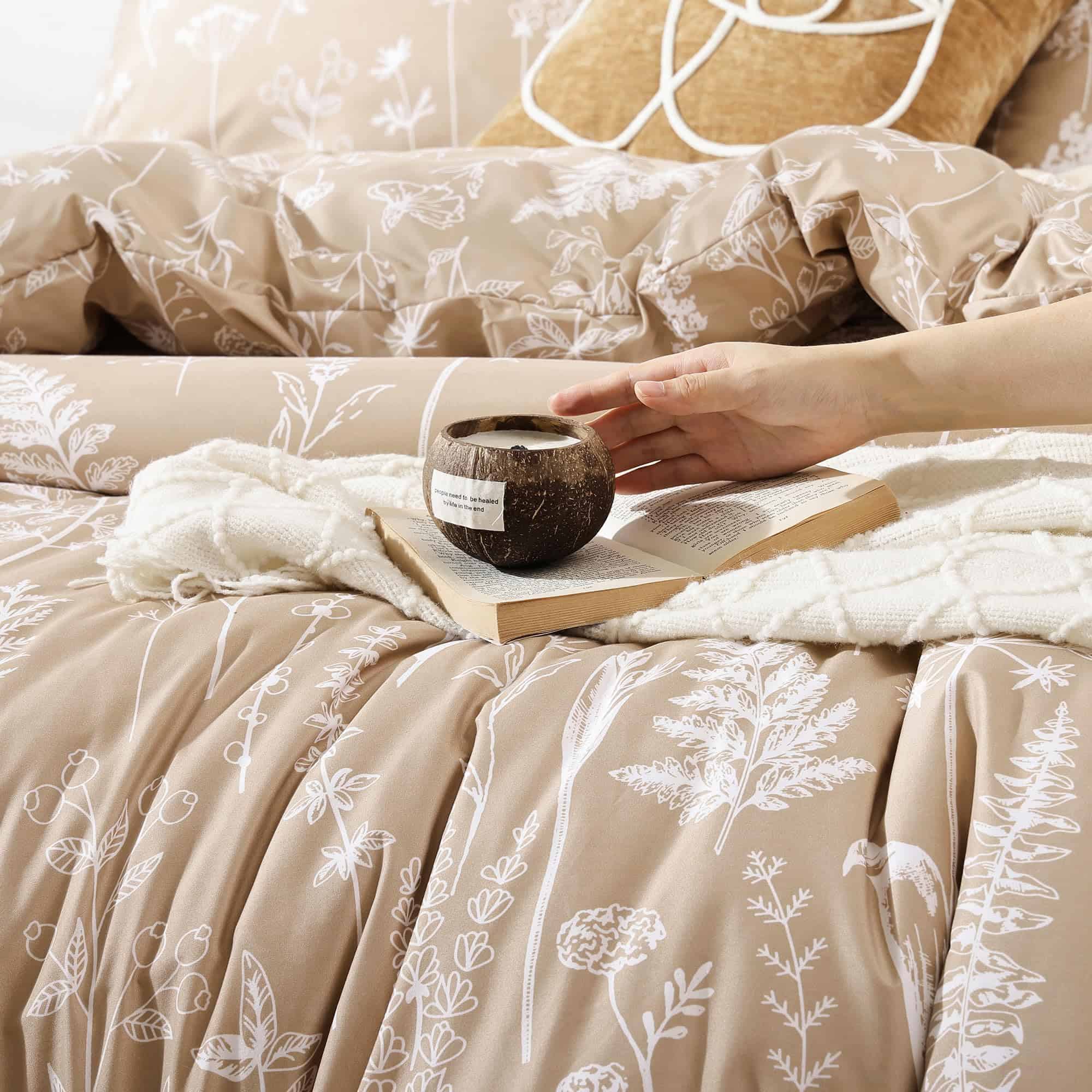 Esta funda nórdica de JANZAA en tamaño queen está diseñada para brindarte comodidad y estilo a tu habitación. Con un estampado floral de estilo botánico en color taupe, esta funda nórdica es perfecta para agregar un toque de naturaleza y elegancia a tu espacio. Hecha de microfibra cepillada de alta calidad, la funda nórdica es suave al tacto, transpirable y duradera, lo que garantiza que te sientas cómodo y relajado mientras descansas. El diseño reversible de la funda nórdica te permite cambiar la apariencia de tu habitación fácilmente. La funda nórdica viene con un cierre de cremallera oculto y cuatro lazos en las esquinas para mantener tu edredón en su lugar y protegerlo de la suciedad y los rasguños. El juego incluye una funda nórdica queen size y 2 fundas de almohada a juego para una apariencia coordinada. Además, el material de la funda nórdica es fácil de cuidar, ya que se puede lavar a máquina sin problemas. Asegura un buen descanso y una decoración elegante con esta funda nórdica floral de JANZAA.