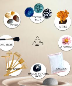 Impregna tu espacio con tranquilidad utilizando nuestro Jardín Zen para Escritorio, Kit de Terapia de Bandeja de Arena. Este Set de Regalo Zen no solo incluye los elementos esenciales como 3 esferas de sello, un soporte personalizado, herramientas de arena y un rastrillo, sino que también presenta elementos naturales: un loto de resina, 4 piedras, 1 roca zen y 1 árbol. Mejora tu decoración zen de oficina o crea un espacio de meditación sereno en casa, mientras te entregas al arte terapéutico del rastrillado de arena y encuentras paz en la simplicidad del diseño inspirado en la naturaleza.