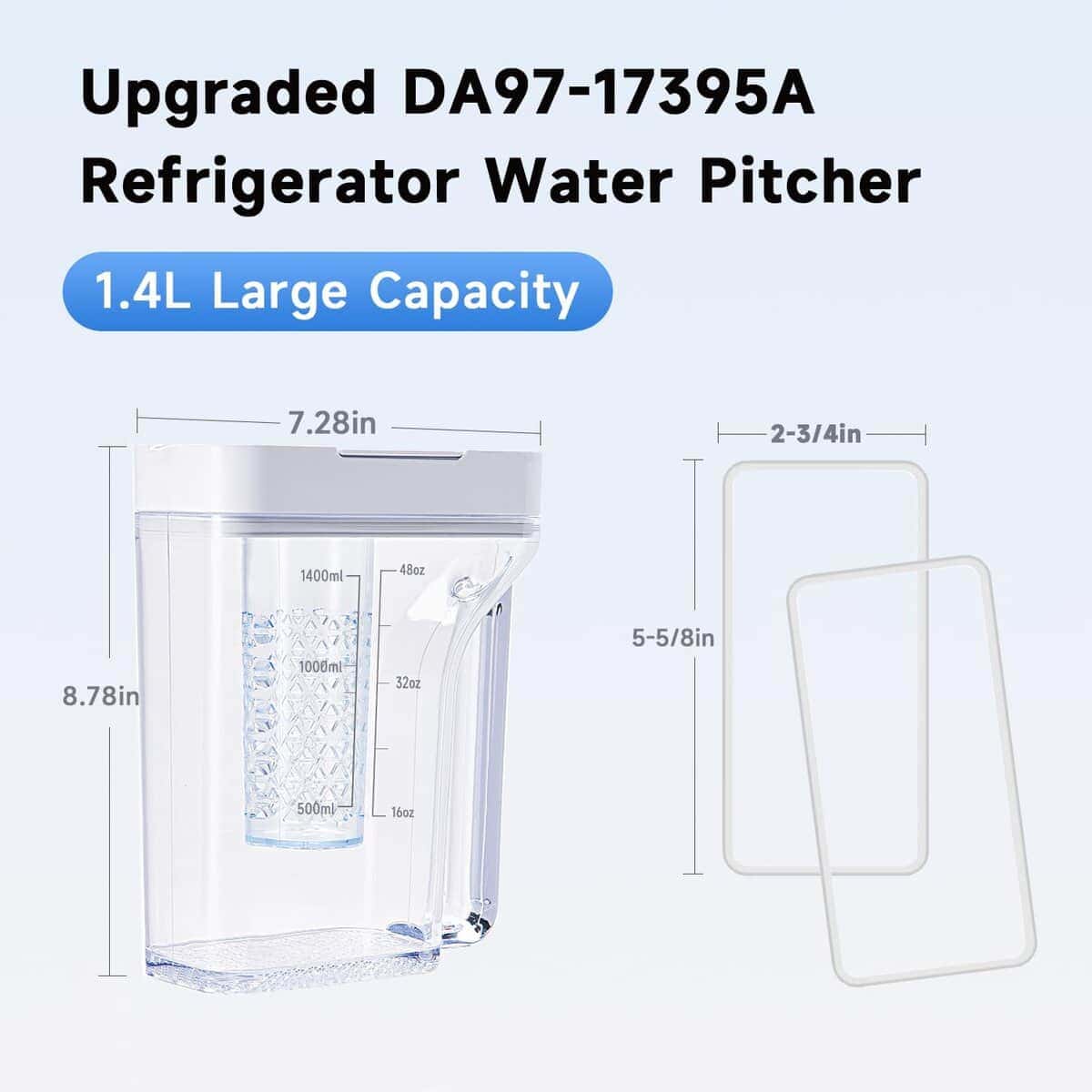 Jarra de depósito de agua para refrigerador actualizada sin fugas WFZHMY con dos anillos de sellado adicionales Jarra para agua para reemplazo de puerta de nevera Compatible con Samsung Reemplazo: DA97-17395A