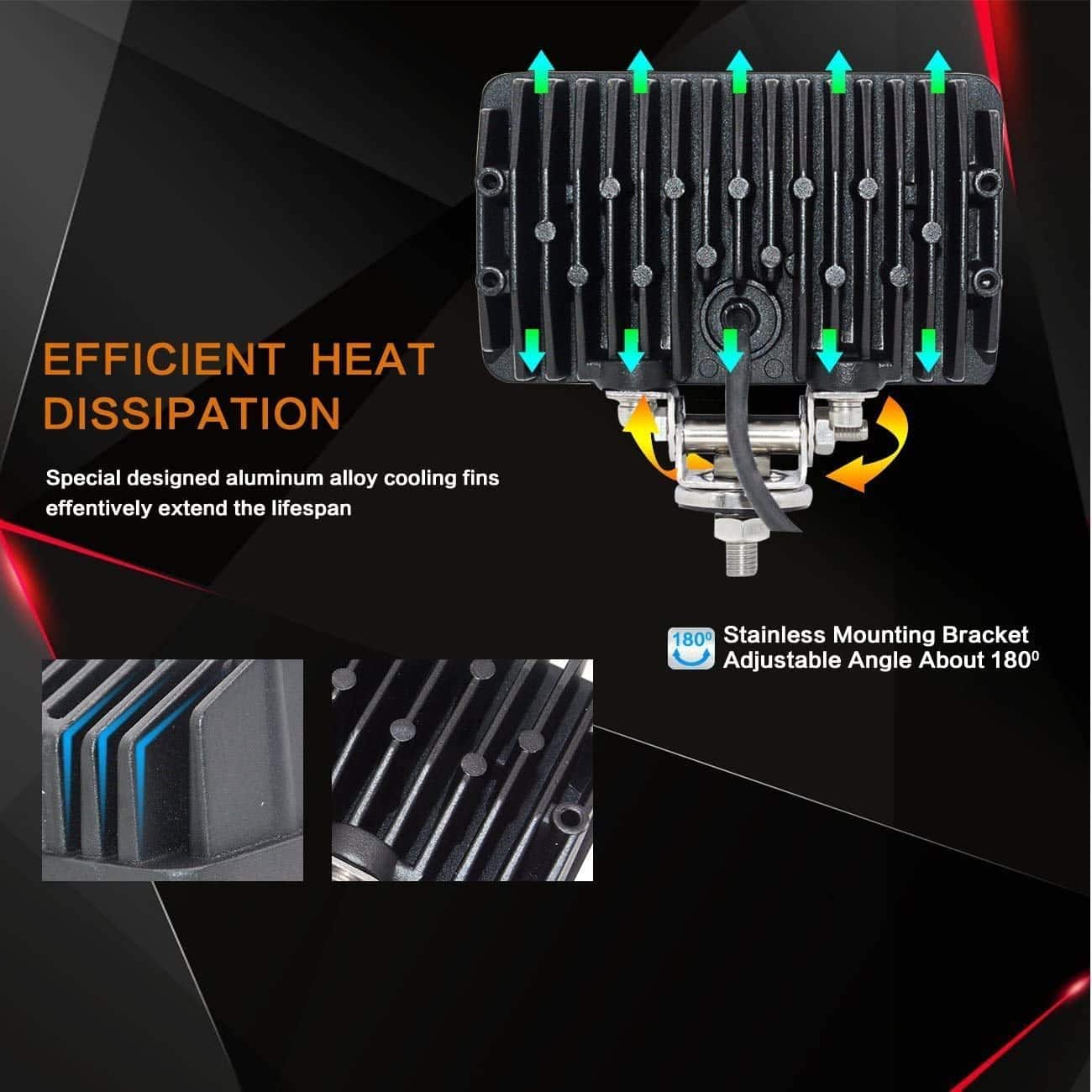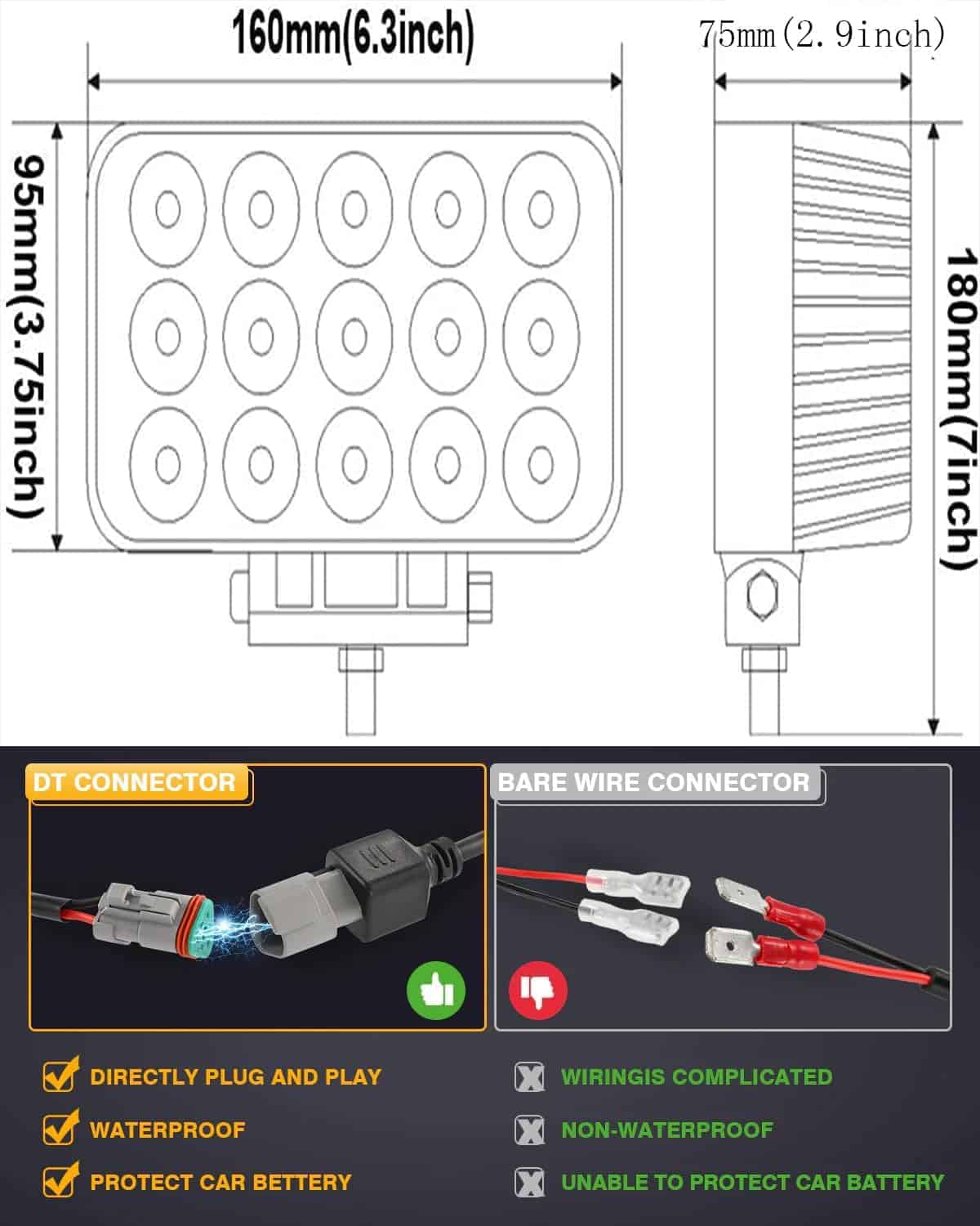 1. Increíble Brillo: El faro LED de 12 voltios supera, rinde mejor y dura más que otras luces LED. El foco de trabajo LED de 45W con chips LED premium, 4500LM, 6500k, fuente de luz súper brillante incluso con la luz del día, ilumina todo a su alrededor y hace que su conducción sea más segura! 2. MEJOR DISIPACIÓN DE CALOR: la luz de inundación LED utiliza un disipador de calor de aleación de aluminio fundido a presión especialmente diseñado, y una aleta de enfriamiento vertical en la parte posterior para una máxima dispersión del calor y extender la vida útil a más de 50,000 horas. 3. Patrón de Haz Perfecto: Las luces auxiliares LED con excelentes reflectores cubiertos en cada LED, superando con creces a esos LED planos. Estas luces auxiliares LED 4×6 con alta transmisión de luz iluminan su camino y mantienen la seguridad para la conducción todoterreno en la oscuridad. Se ajusta a todoterrenos, tractores, camiones, equipo pesado, etc. 4. EXCELENTE PROTECCIÓN: luces LED de niebla de 12/24 voltios de 45W para equipos pesados con lentes de policarbonato duraderas, carcasa de aluminio fundido y hardware de acero inoxidable se combinan para ofrecer un sistema de iluminación que puede soportar las exigencias del trabajo duro. Un generoso sellado de silicona protege las luces cuando están expuestas a vibraciones sobre terreno difícil. Tiene una clasificación IP67 para un rendimiento impermeable y a prueba de polvo. 5. Fácil Instalación y Paquete Incluido: Las luces de trabajo LED pesadas de 12v/24v se montan fácilmente con soporte trasero o pedestal. Le proporcionamos el soporte, perno, tuerca, arandela y conector impermeable. Paquete incluido: 2 luces LED de 45W + soportes ajustables + tornillos.