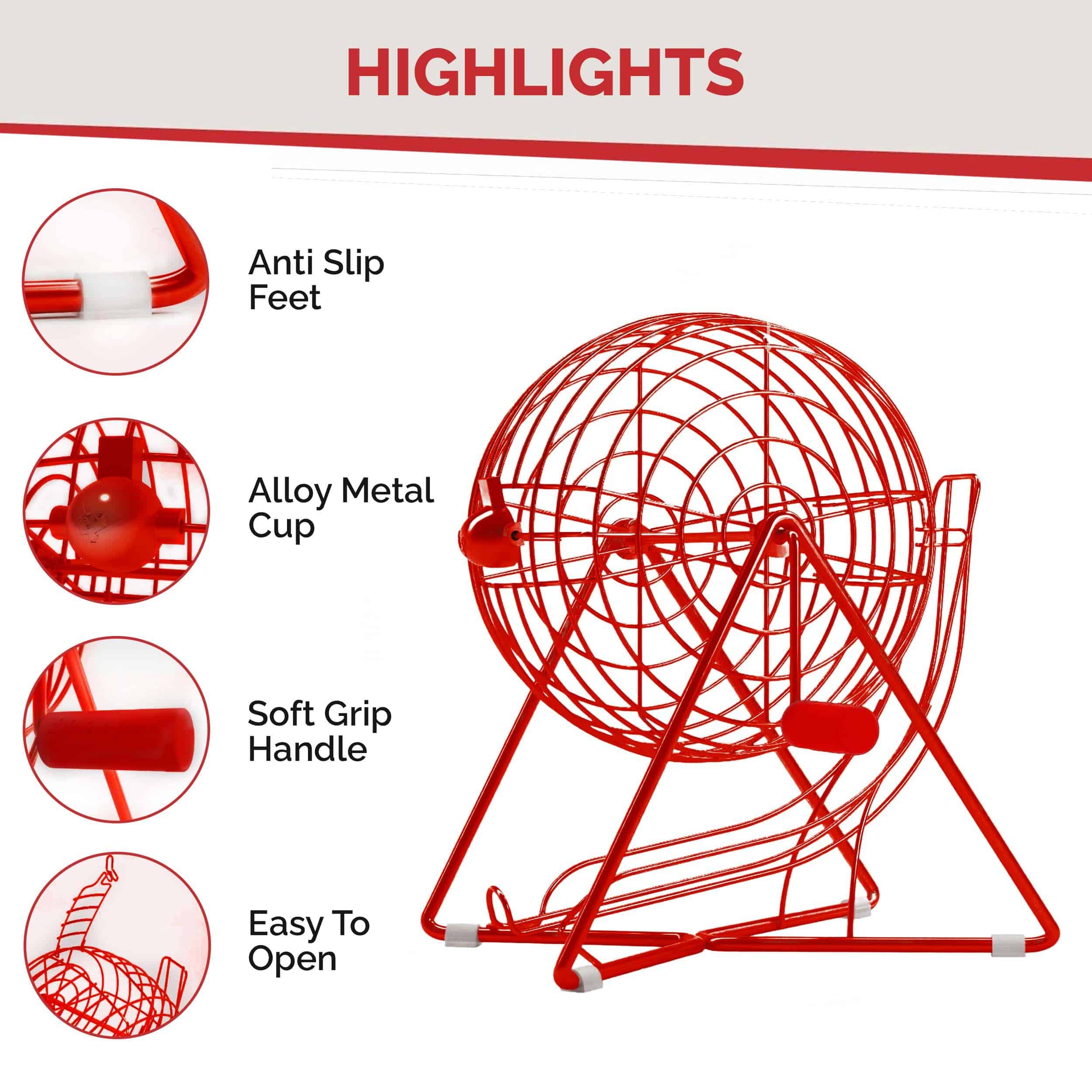 SOBRE NOSOTROS: MR CHIPS es un fabricante líder de bolas de bingo de uso profesional, juegos de césped al aire libre, etc. Con una amplia variedad de juegos profesionales disponibles, ¡seguramente encontrarás el conjunto perfecto para tu juego! Mr. Chips, Inc ofrece el único juego de calidad en el mercado que presenta una tecnología increíble. ESPECIFICACIONES: ¡Los juegos de bingo más amplios con jaula en el mercado! Garantizamos la artesanía de la más alta calidad para garantizar un barajado uniforme y constante cada vez. Esta jaula de bingo es ideal como reemplazo o como repuesto para tener a mano. No te dejes engañar por otros vendedores que dicen tener la misma calidad en el juego de jaula de bingo. Asegúrate de comprar a Mr. Chips para recibir lo mejor en calidad y confiabilidad en el set de jaula de bingo rodillo. DETALLES DEL PRODUCTO: Jaula pequeña – Tamaño – 11″ de altura x 10″ de diámetro x 9.5» de ancho – Jaula de alambre – Mango rojo – Acabado elegante. CARACTERÍSTICAS: Duradero – Portátil – Ligero – Contiene 75 bolas de bingo de 7/8″ (22 mm) de tamaño – Compacto.