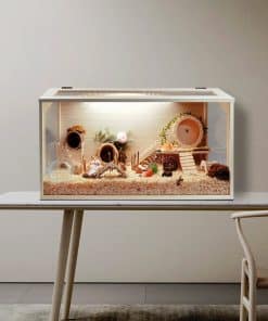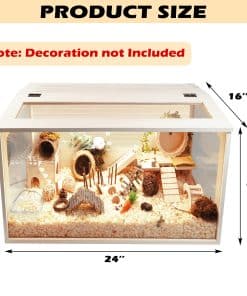Espacio grande. El espacio interactivo extremadamente grande puede contener camas gruesas y un sistema de juguetes para que tus mascotas excaven y exploren, estableciendo hábitats para tus hámsteres. Es fácil de arreglar su escondite, zona de baño de arena, rueda para hámster o escena de exploración en la jaula. La decoración interior no está incluida en el paquete.