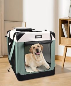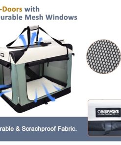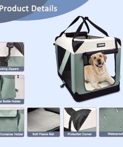 Jespit Jaula de Perro Suave Dimensiones: Jaula de perro plegable de lado blando de 36 L 24 W 27 H para perros grandes de hasta 70 lbs. Nuestra jaula de perro es 2″ más ancha y 3″ más alta que la mayoría de las jaulas de 36″ de otras marcas. Jaula de perro suave portátil y ligera que facilita los viajes al aire libre. Fabricada con tela Oxford catiónica 600D y malla de gran peso, posee una resistencia fiable. El marco plegable de la jaula de perro está hecho de tubo de acero fuerte; una jaula bien ventilada, elegante, ligera y duradera. Tres puertas de malla (superior, frontal y lateral) para una conveniente entrada de luz solar y transpirabilidad; amplia ventilación para usar en todas las estaciones. Fácil de transportar con asa o correa. Correa ajustable incluida. Incluido colchón de felpa: Nuestra jaula de perro plegable para viajes de interior y exterior tiene una colchoneta de felpa en su interior. El colchón de felpa de calidad proporciona un lugar cómodo para tu mascota. Ligero y fácil de transportar a todos los lugares. Correa de transporte ajustable y colchoneta de felpa incluidas. Fácil de instalar: La jaula de perro suave plegable Jespet se puede instalar y plegar fácilmente. Barras plegables con muelles retráctiles hacen que la configuración sea sencilla y el almacenamiento eficiente.