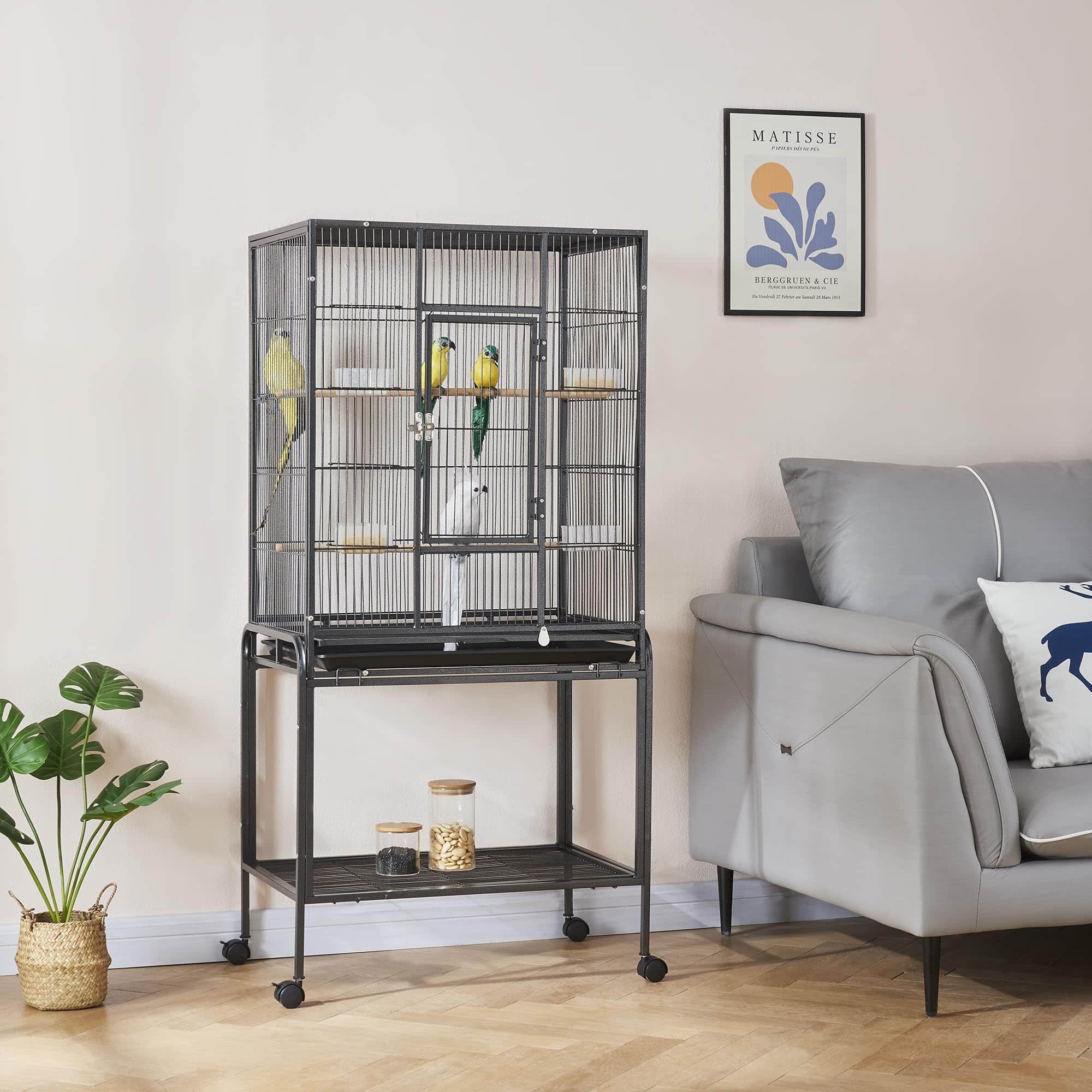 2. Espacio grande para la diversión Jaula de cría ideal para aves Con un espaciado de alambre de 1 cm. El estante de almacenamiento adicional te ayuda a mantener las herramientas de limpieza, las semillas de los pájaros y los juguetes de las aves a mano y ordenados.