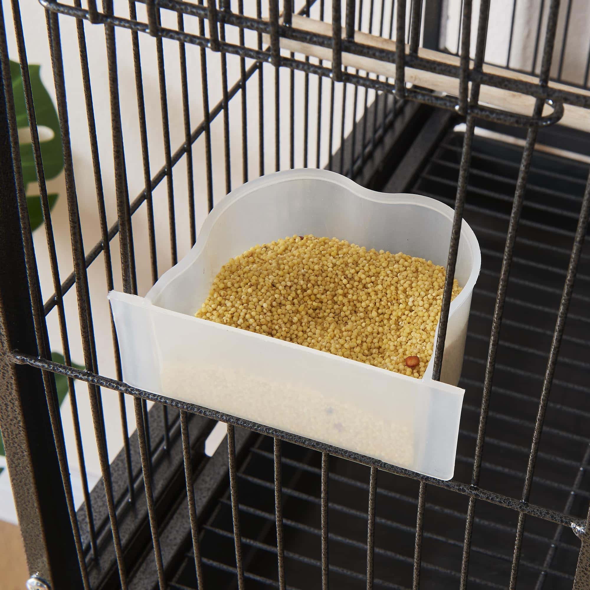 1. Construcción sólida con la jaula de metal impermeabilizada y la bandeja deslizable inferior, la limpieza de esta jaula sería muy fácil para los padres de mascotas. La rejilla extraíble en la parte inferior evita que las aves caminen en sus excrementos.