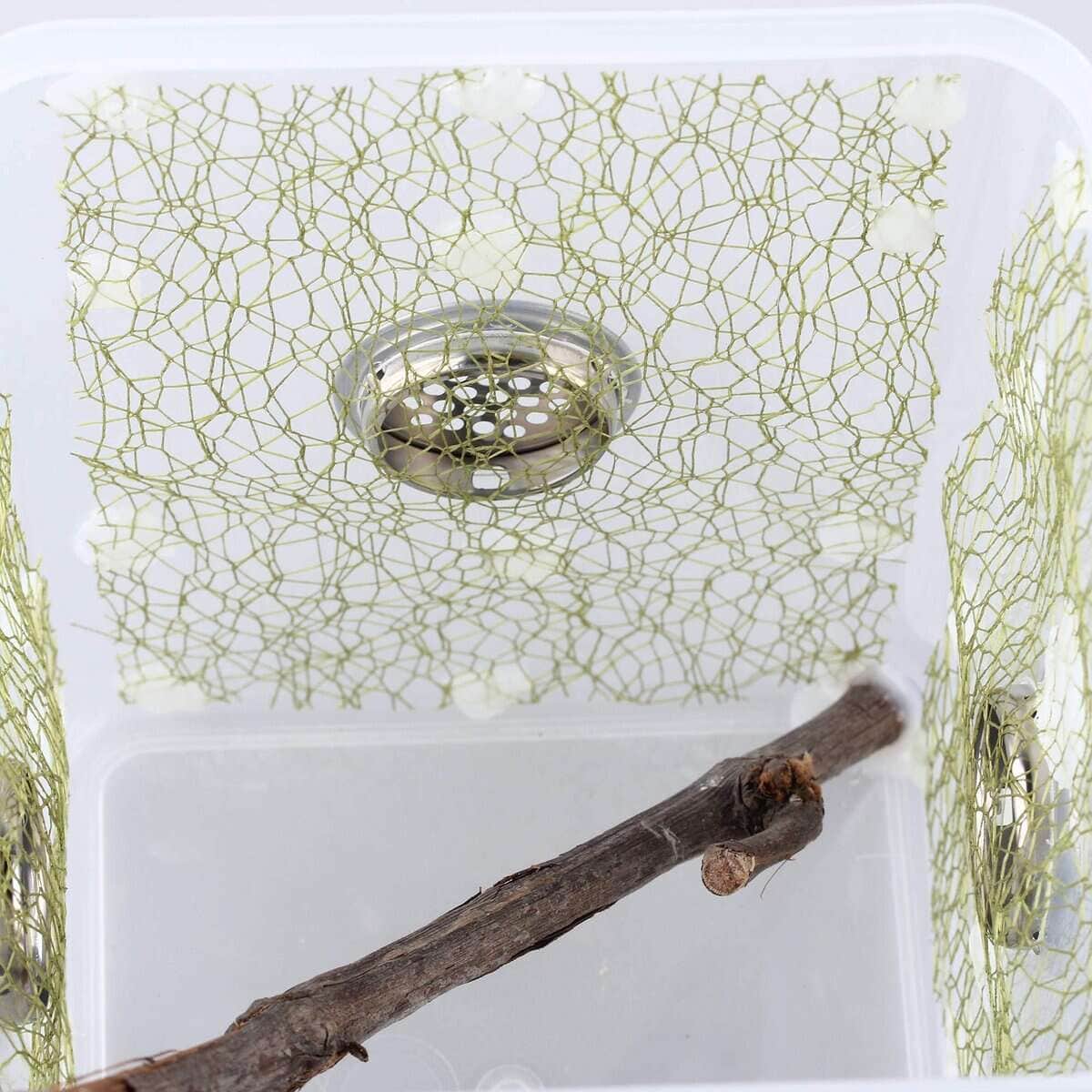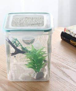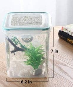 Tamaño de 6.2 x 6.2 x 7 pulgadas. El diámetro del agujero de ventilación es de 0.118 pulgadas. El paquete incluye una caja, una pinza y una taza de alimentación. 1. Bien diseñado. El tanque está compuesto de un cuerpo transparente y una tapa sellada con una gran área de rejilla de metal. El diseño minimalista asegura la belleza y la practicidad. Es una obra de arte en tu escritorio. 2. Aire libre gratuito. La rejilla de ventilación garantiza más aire fresco que los agujeros de ventilación trillados. Proporcionará un entorno más cómodo para tus mascotas. 3. Observa a tus mascotas en todo momento. El cuerpo está hecho de plástico PS de alta calidad, te dará las vistas más claras y podrás ver a tus mascotas claramente. 4. Diseño de hilo de rejilla interior. La pared interior está llena de hilo de rejilla. Crea un entorno natural artificial para tus mascotas y beneficia a la reproducción y eclosión. 5. Rama natural real. Hace que tus mascotas estén más cerca de la naturaleza real. A tus mascotas les gustará y se sentirán cómodas. 6. Una buena herramienta para la ciencia al aire libre y la exploración natural de animales. El tamaño adecuado te permite llevarlo fácilmente. Será un artículo útil para recolectar insectos, pequeños reptiles, escarabajos o ranas. 7. Adecuado para: juegos de mariposas, jaulas de insectos, hábitats de mantis, cazadores de insectos, juegos de criaturas, frascos de gusanos, contenedores de orugas, terrarios de grillos, cajas de caracoles, cajas de arañas, etc.
