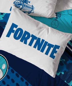 Suave y resistente a la decoloración 100% poliéster de microfibra cepillado. Diseño decorativo del Batalla del Bus de Fortnite en el edredón reversible. Lavar a máquina en frío, secar en secadora a baja temperatura.