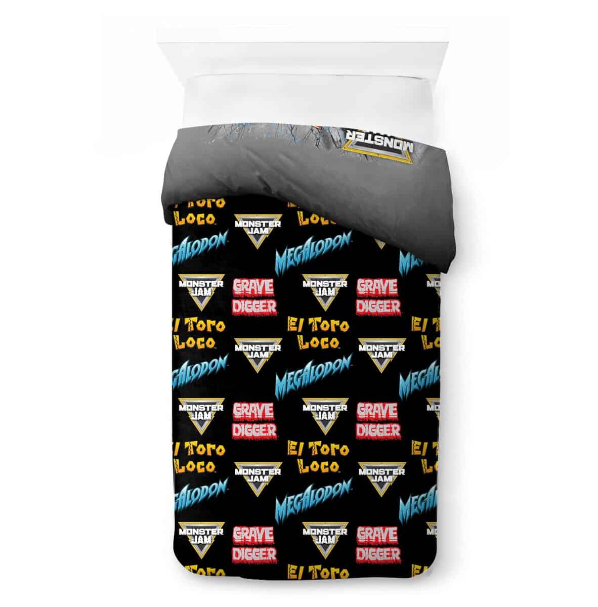 Transforma el dormitorio de tu hijo con nuestro juego de funda de edredón Monster Jam de 2 piezas tamaño twin, que incluye una funda de edredón y dos fundas de almohada a juego. Perfecto para añadir comodidad, estilo y personalidad a cualquier habitación infantil, este set da vida a la hora de dormir con su diseño reversible y toque lúdico. Fabricadas con premium poliéster de microfibra cepillada al 100%, la funda de edredón y fundas de almohada son increíblemente suaves, duraderas y transpirables para un descanso nocturno placentero. La funda de edredón incluye un cierre de botones para un uso fácil y un ajuste seguro, mientras que el diseño reversible te permite cambiar la apariencia de la cama de tu hijo cuando lo desees. El set viene completo con una funda de edredón tamaño twin (64″ x 86″) y una funda de almohada a juego (20″ x 26″), haciendo fácil crear un espacio de descanso coordinado y acogedor. Ideal tanto para niños como niñas, este juego de funda de edredón es perfecto para uso diario, pijamadas o como un regalo considerado para cumpleaños y festividades. Los vibrantes diseños con Grave Digger, Megalodon y El Toro Loco añaden un toque divertido a cualquier decoración de dormitorio infantil, ayudando a despertar la imaginación y hacer que su habitación se sienta extra especial. Los padres adorarán la conveniencia de este juego de funda de edredón lavable a máquina, asegurando un cuidado fácil y un color duradero que se vea genial lavado tras lavado. Dale a la habitación de tu hijo una actualización fresca con este juego de funda de edredón de camiones monstruos divertido, versátil y con estilo – la forma perfecta de crear un ambiente cómodo y acogedor que adorarán!