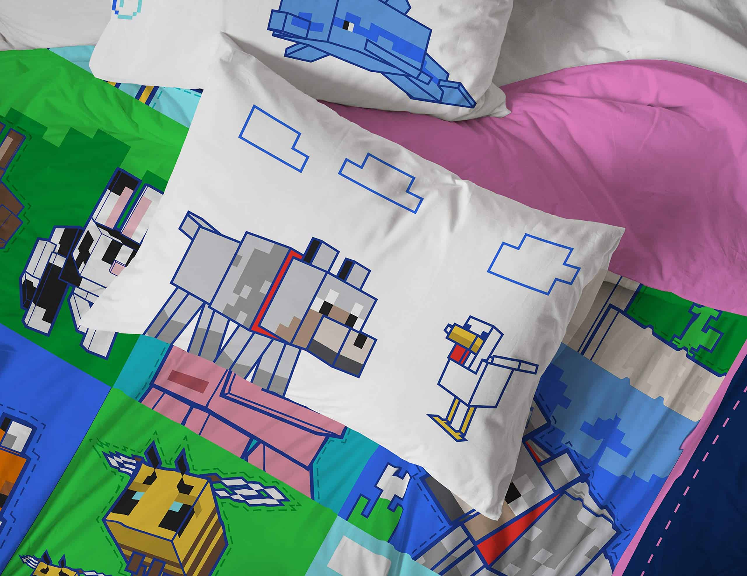 Este conjunto de cama de Minecraft es perfecto para cualquier fan del popular videojuego. El tejido 100% microfibra cepillada es suave y duradero, resistente a las manchas y se puede lavar a máquina. Ideal como regalo para cualquier niño que transformará su habitación en un espacio lleno de diversión y color. Completa tu dormitorio con otros productos de Minecraft para una decoración coordinada. Somos una empresa familiar pequeña que se enorgullece de ofrecer productos de excelente calidad y un servicio al cliente insuperable.