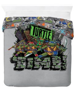 Transforma el dormitorio de tu hijo con nuestro set de funda nórdica tamaño completo de las Tortugas Ninja de 3 piezas, que incluye una funda nórdica y dos fundas de almohada a juego. Perfecto para agregar comodidad, estilo y personalidad a cualquier habitación de niños, este set da vida a la hora de acostarse con su diseño reversible y toque juguetón. Fabricado con premium 100% poliéster microfibra cepillado, la funda nórdica y fundas de almohada son increíblemente suaves, duraderas y transpirables para una noche de sueño reparador. La funda nórdica incluye un cierre con botón para un uso fácil y un ajuste seguro, mientras que el diseño reversible te permite cambiar el aspecto de la cama de tu hijo siempre que lo deseen. El set viene completo con una funda nórdica tamaño completo (76″ x 86″) y dos fundas de almohada a juego (20″ x 26″), lo que facilita crear un espacio de descanso coordinado y acogedor. Ideal tanto para niños como niñas, este set de funda nórdica es perfecto para el uso diario, pijamadas o como un regalo considerado para cumpleaños y fiestas. Los vibrantes diseños con Leonardo, Raphael, Donatello y Michaelangelo añaden un toque de diversión a la decoración de dormitorios infantiles, ayudando a estimular la imaginación y hacer que su habitación se sienta especial. Los padres amarán la conveniencia de este set de funda nórdica lavable a máquina, asegurando un cuidado fácil y un color de larga duración que se vea genial lavada tras lavada. Da a la habitación de tu hijo una actualización fresca con este divertido, versátil y elegante set de funda nórdica de las Tortugas Ninja – la manera perfecta de crear un ambiente de descanso cómodo y acogedor que les encantará!