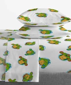 Juego de cama oficial de Teenage Mutant Ninja Turtles que incluye un edredón reversible, sábana plana, sábana ajustable y fundas de almohada. Presenta a los personajes icónicos Leonardo, Donatello, Raphael y Michelangelo en un divertido diseño de ladrillos verdes sobre un fondo negro, perfecto para cualquier fan de las Tortugas Ninja. Hecho de microfibra de poliéster cepillado 100% suave, resistente a la decoloración para una comodidad y durabilidad duraderas. Este juego de cama completo se ajusta a la mayoría de las camas individuales y dobles, e incluye 1 edredón, 1 sábana plana, 1 sábana ajustable y 2 fundas de almohada estándar. Fácil de cuidar, se puede lavar a máquina y secar en secadora a baja temperatura para un mantenimiento sencillo.