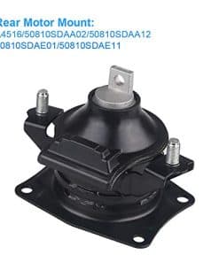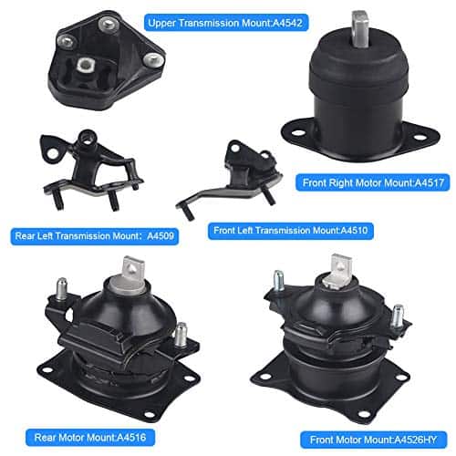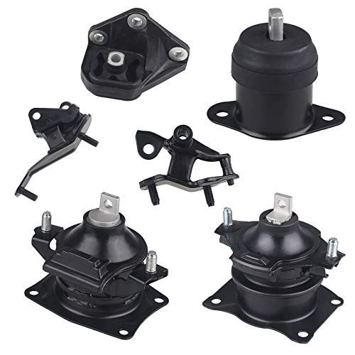 Compatibilidad: Compatible con Honda Accord 2.4L 2003-2007. Paquete Incluye: 3 Montajes del Motor + 3 Montajes de Transmisión. Consejos Prácticos: A4542: Montaje de la Transmisión Superior. A4516: Montaje del Motor Trasero. A4509: Montaje de la Transmisión Trasero Izquierdo. A4517: Montaje del Motor Delantero Derecho. A4526HY: Montaje del Motor Delantero. A4510: Montaje de la Transmisión Delantera Izquierda. SÍNTOMAS DE UN MONTAJE DE MOTOR DEFECTUOSO: 1. Ruidos de impacto provenientes de la bahía del motor. Uno de los síntomas más comunes asociados con los montajes de motor desgastados son los ruidos de impacto provenientes de la bahía del motor. 2. Vibraciones excesivas. Otro síntoma de un montaje de motor defectuoso es la vibración excesiva. 3. Movimiento del motor. En general, si el motor comienza a moverse, entonces es necesario cambiar el montaje del motor.