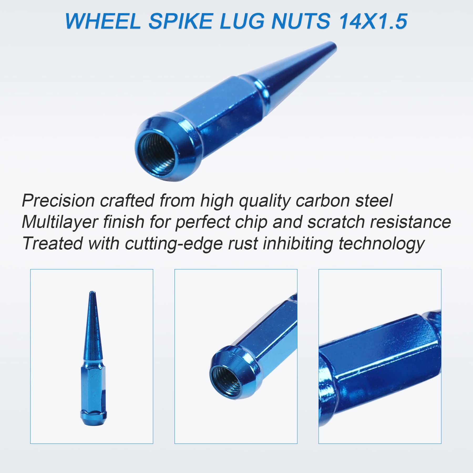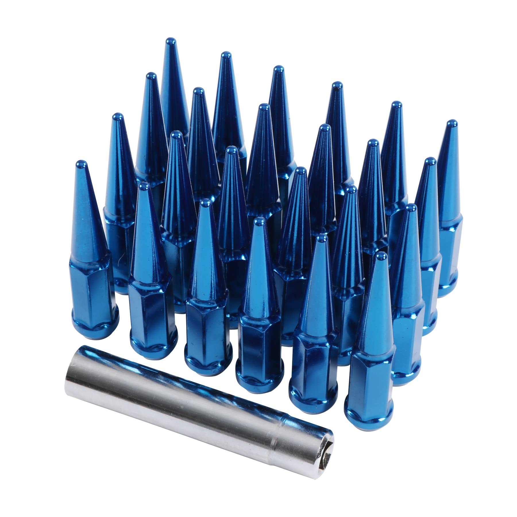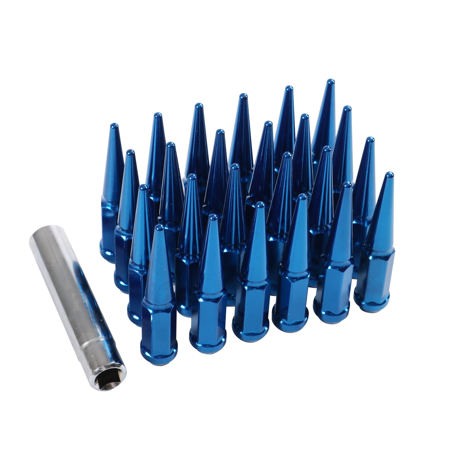 Nuevo juego de 24 tuercas de seguridad espigadas azules de JDMSPEED, diseñado para brindar seguridad y estilo a sus ruedas. Cada tuerca cuenta con un diseño sólido en forma de espiga y viene con una llave especial para su instalación y desinstalación. Con una longitud total de 4.5 pulgadas y un ancho de 0.90 pulgadas, estas tuercas son ideales para vehículos con un paso de rosca de 14×1.5. El conjunto es un reemplazo perfecto para una amplia variedad de vehículos, incluidos GMC Sierra 1500 2WD 1994-2016, GMC Yukon Todos 1999-2017 y Lincoln Navigator 2015-2017. La herramienta de llave extralarga incluida agrega una capa de seguridad al evitar que ladrones de ruedas puedan quitar las ruedas sin ella. La pintura azul duradera de las tuercas garantiza que no se desprenda fácilmente, asegurando un aspecto elegante y duradero para las ruedas de su vehículo. Dale a tus ruedas un toque distintivo y seguro con este juego de tuercas espigadas de JDMSPEED.