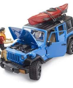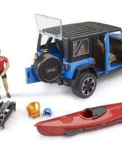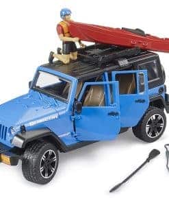 Alcance las áreas de deportes acuáticos más hermosas en el brillante Jeep Wrangler Rubicon Unlimited todo terreno. Además del techo de dos partes desmontable, el capó, la puerta trasera y las cuatro puertas laterales se abren. Es obvio que el vehículo proporciona suficiente espacio en el interior para cuatro figuras BRUDER bworld. Alternativamente, el asiento trasero se puede quitar para crear espacio para accesorios compatibles con conectores estándar BRUDER en la zona de carga. La barra de acoplamiento adicional está destinada a facilitar la dirección a través de la escotilla del techo y si no es necesario, se puede almacenar en el fondo del vehículo. Los ejes cuentan con suspensión típica de vehículos todo terreno y neumáticos con dibujo y ruedas cromadas en un atractivo diseño de SUV. El kayak se transporta en la parrilla de techo suministrada.