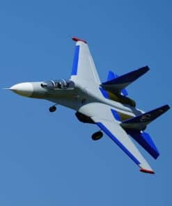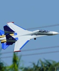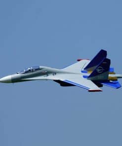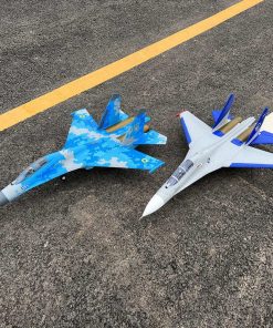 Jet de ventilador ducto Su-27 Twin 50mm EDF 4S de XFLY-MODEL en color gris. Esta aeronave es una réplica a escala del famoso caza Sukhoi utilizado en misiones de superioridad aérea. Cuenta con potentes motores exteriores gemelos compatibles con 4S y un ventilador de 12 palas de 50 mm que brindan una excelente velocidad máxima, rendimiento vertical y un sonido tipo turbina que hará que te sientas como si estuvieras en un verdadero avión de combate. El jet puede adaptarse a baterías de 4S de 2200mAh-3000mAh, lo que proporciona un amplio rango de rendimiento y tiempos de vuelo para que puedas disfrutar de largas horas de vuelo. Además, cuenta con un tren de aterrizaje resistente y desmontable con una rueda delantera orientable para facilitar las maniobras en tierra. Los servos digitales instalados de fábrica son rápidos y precisos, con conexiones de bola equipadas con bielas para garantizar movimientos precisos y suaves en el aire. ¡Lleva la emoción de la aviación de combate a un nuevo nivel con este increíble jet de XFLY-MODEL!