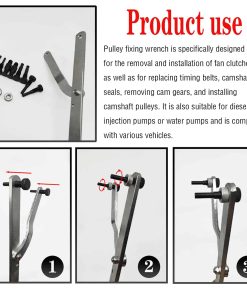 La llave de sujeción de la polea está específicamente diseñada para la remoción e instalación de embragues de ventiladores, así como para reemplazar correas de tiempo, sellos de árbol de levas, remover engranajes de árbol de levas e instalar poleas de árbol de levas. También es adecuada para bombas de inyección diesel o bombas de agua y es compatible con varios vehículos.