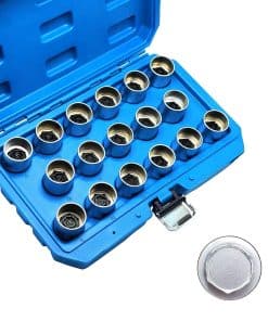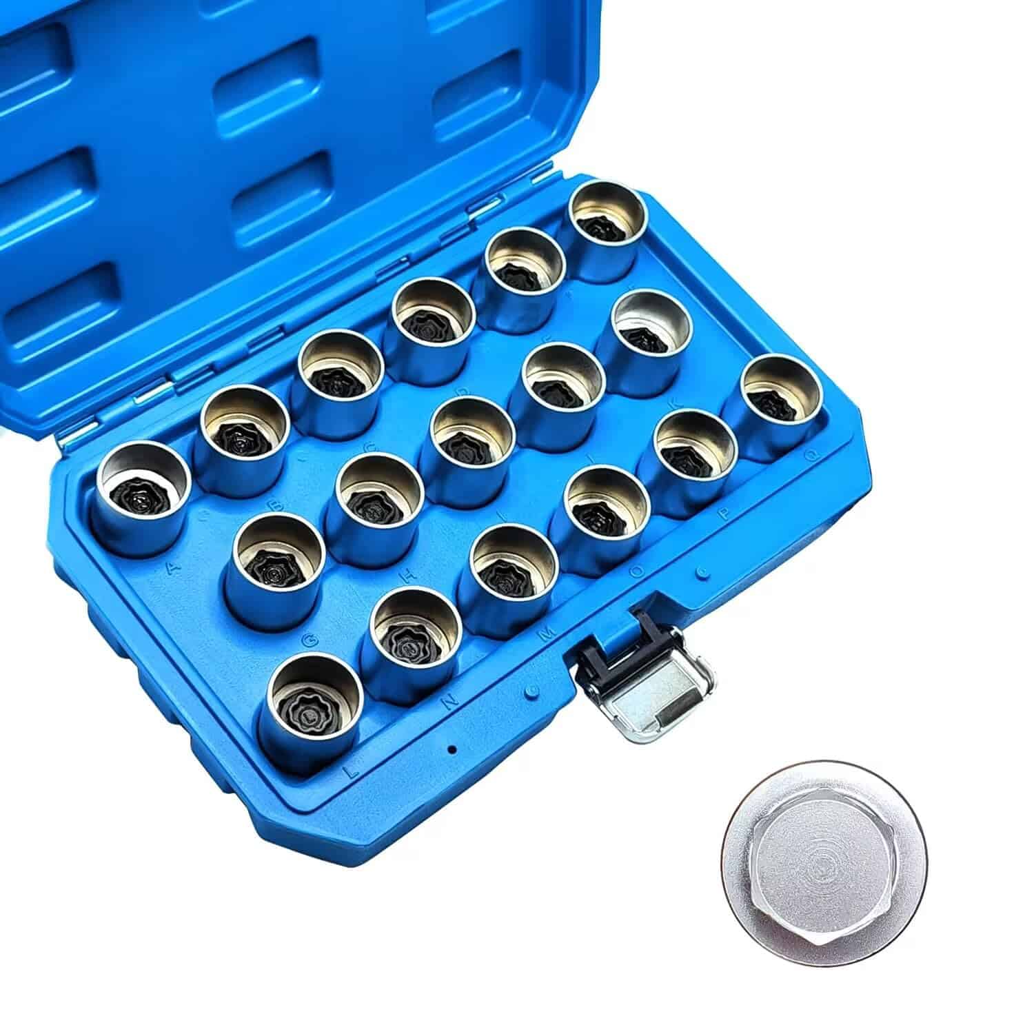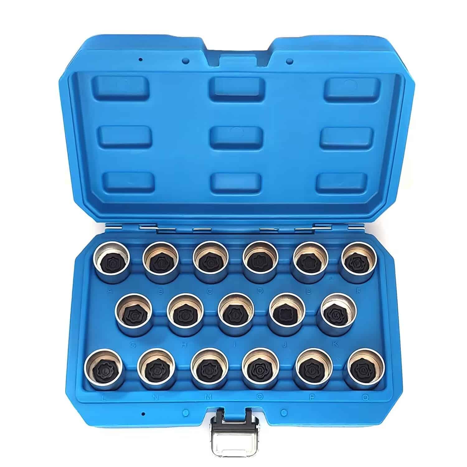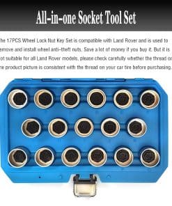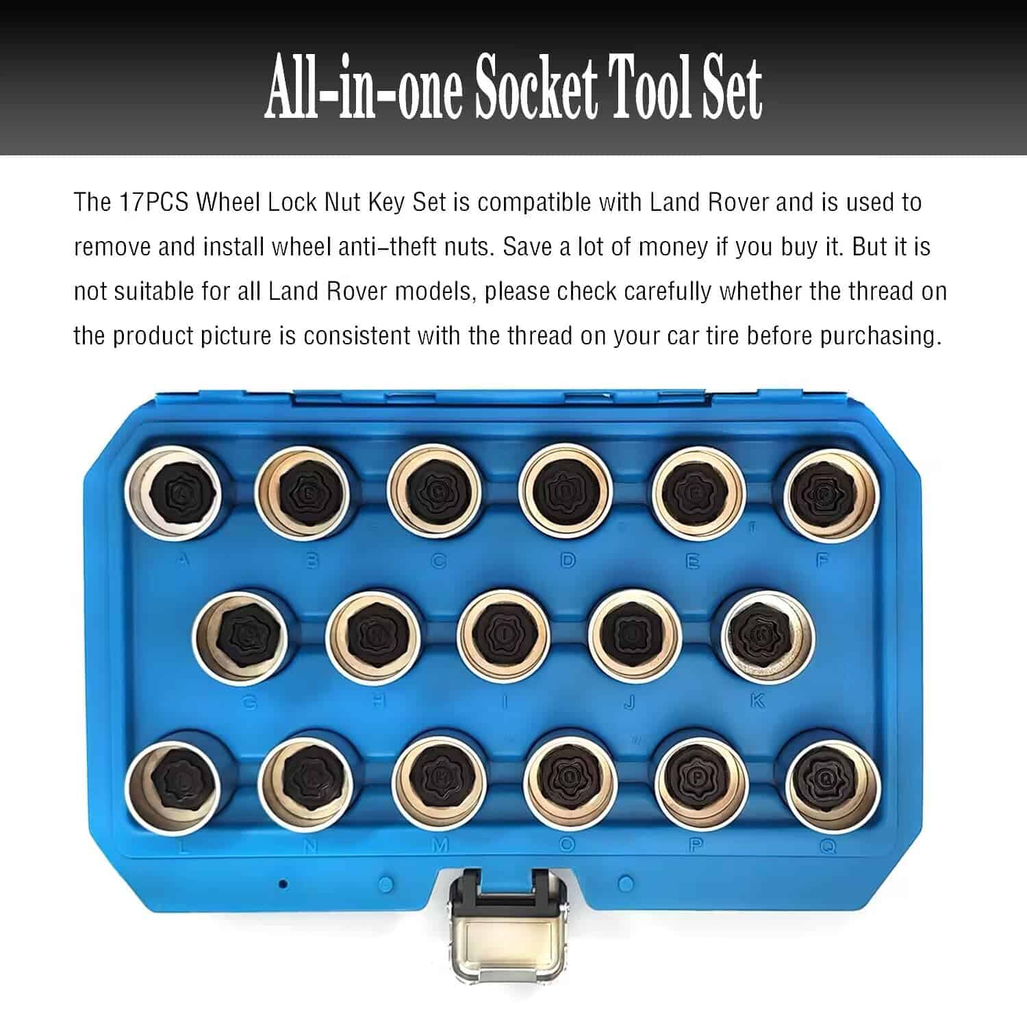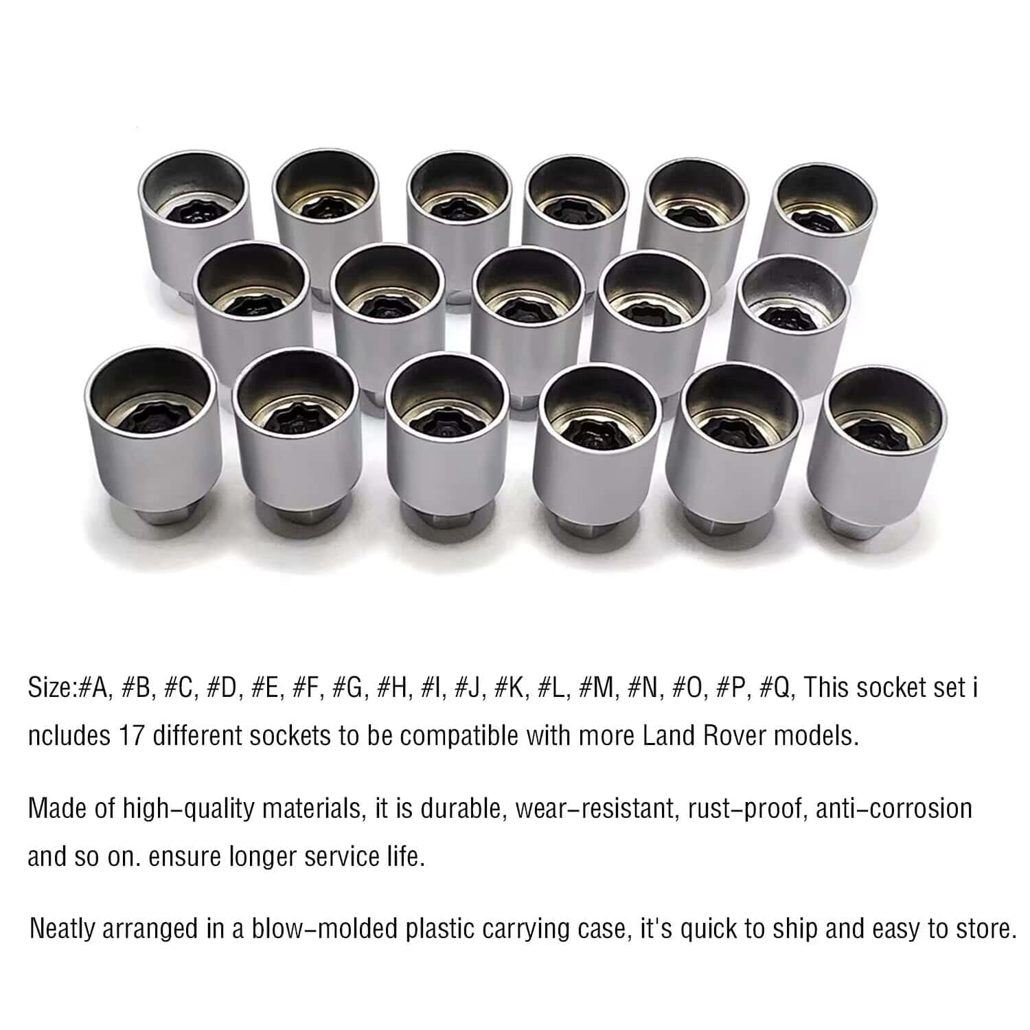 El set de 17PCS de llave de tuerca de bloqueo de rueda es compatible con Land Rover y se utiliza para quitar e instalar tuercas antirrobo de rueda.