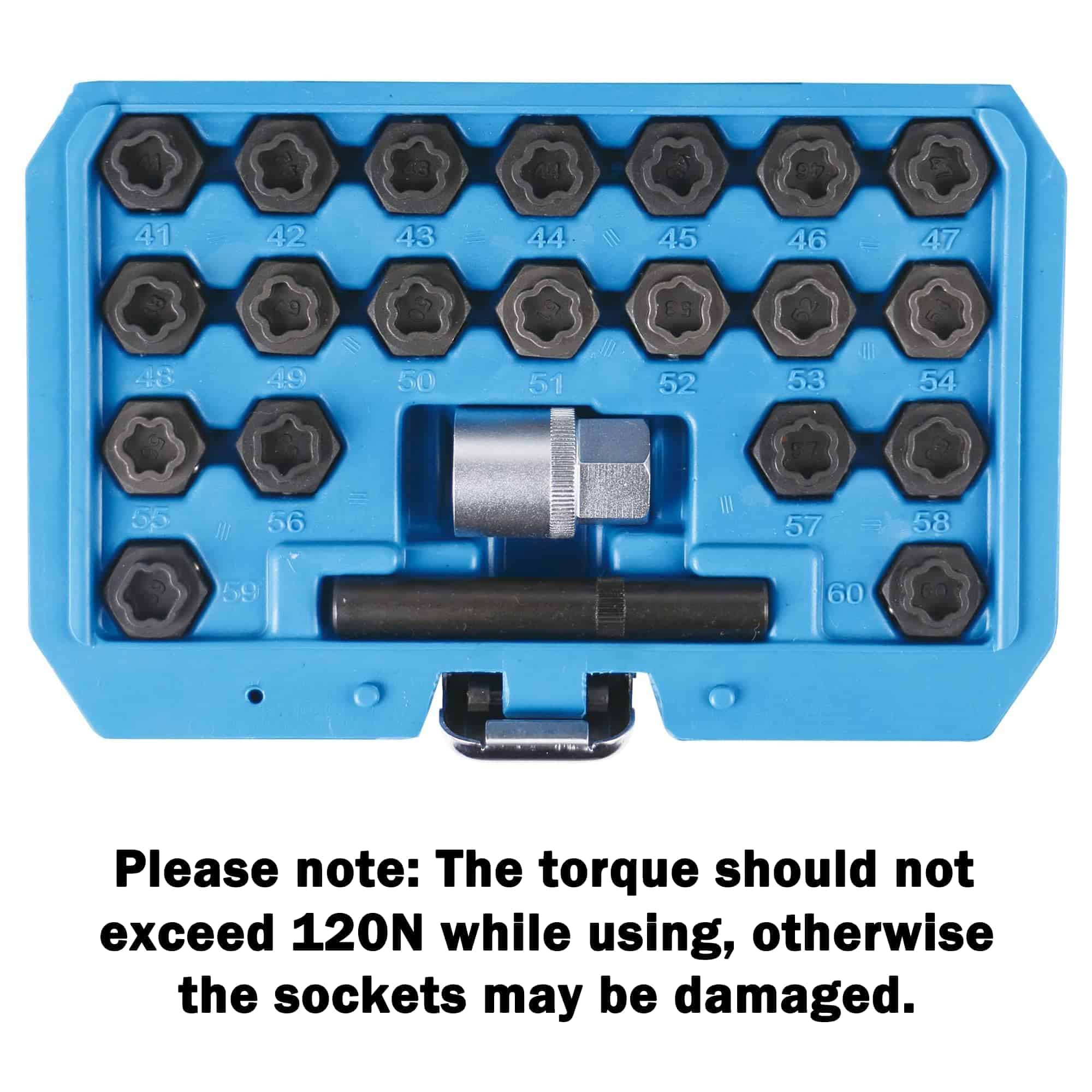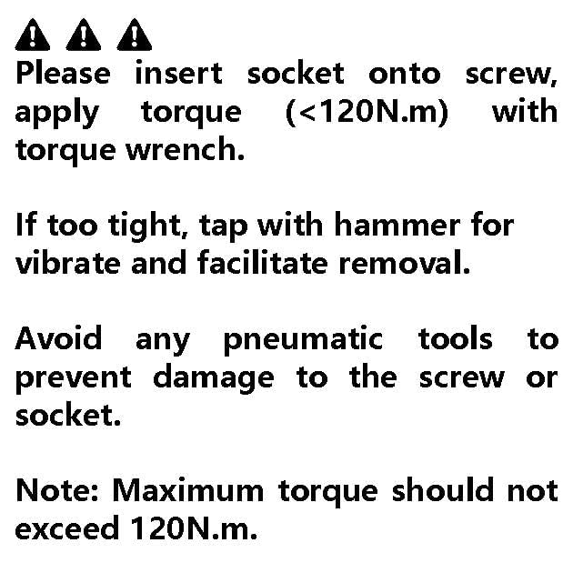 Por favor, tenga en cuenta que el par de apriete no debe exceder los 120N al usarlo, de lo contrario los enchufes pueden dañarse. Al quitar las tuercas de bloqueo del automóvil, es mejor aflojar cada tuerca de manera uniforme al mismo tiempo en lugar de quitar completamente una tuerca y luego quitar la otra. Esto ayudará a reducir el estrés de quitar las tuercas restantes.