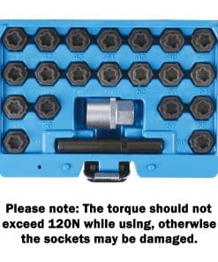 El Juego de Llaves para Tuerca de Bloqueo de Ruedas de 22 Piezas es compatible con una amplia gama de BMWs y se utiliza para quitar e instalar tuercas de bloqueo antirrobo de ruedas. Por favor, seleccione la llave visualmente coincidiendo con el patrón de la llave con las tuercas de bloqueo en el vehículo, la compatibilidad primaria no se basa en el modelo o año del vehículo. Si es necesario, puede adquirir nuestro otro juego de herramientas de enchufe de tuerca de bloqueo para BMW.