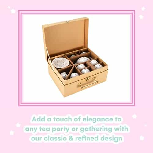 3. Estuche Resistente para Transportar y Almacenar: Este juego de té para niñas viene con un estuche de 10 pulgadas que ayuda a almacenar y organizar todas las piezas. También ayuda a mantener seguro el juego de té para niñas de 4-6 años cuando no está en uso.