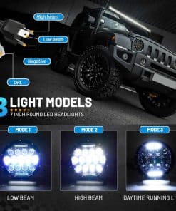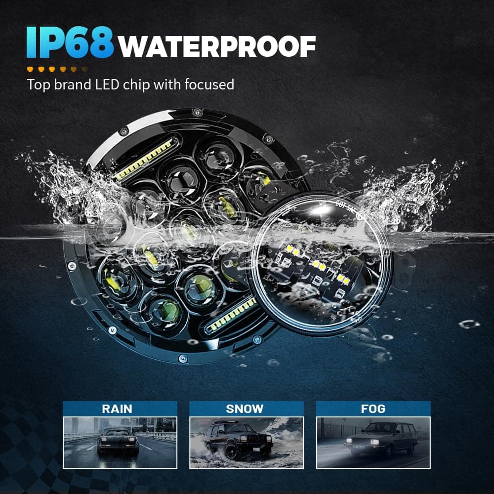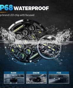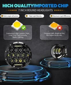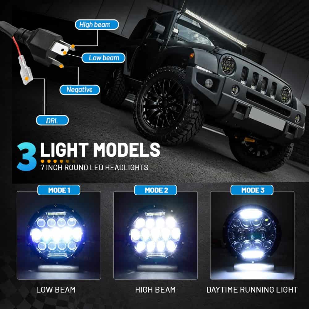 1. FAROS LED DE ALTO RENDIMIENTO Aprobados por el DOT, faros LED para Jeep con chips originales Cree a prueba de agua IP67, legales en la carretera, 100% originales de alto rendimiento, faros LED de 7 pulgadas con super brillante 10000LM (Luz alta), 7000LM (Luz baja). Más de 50000 horas de vida útil.