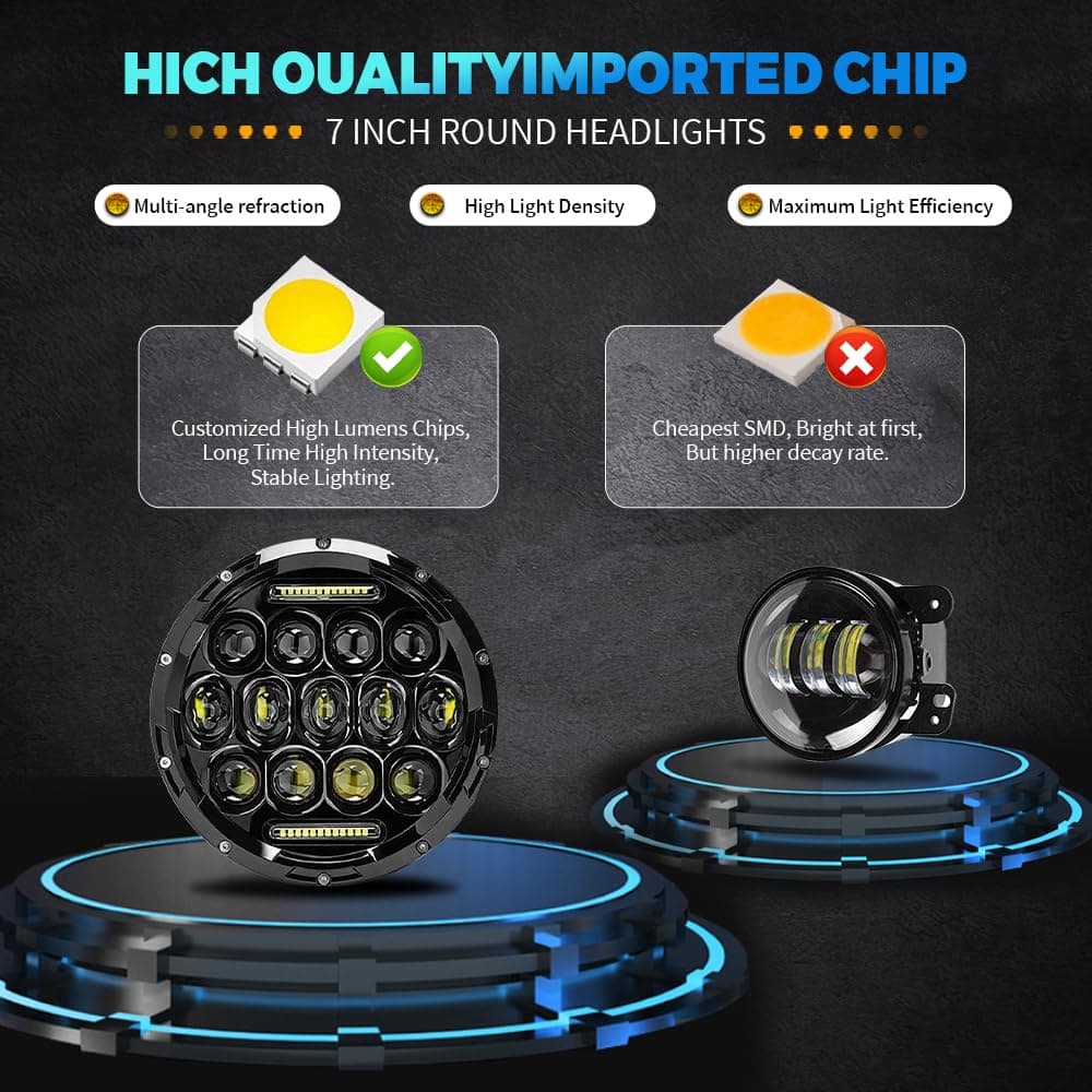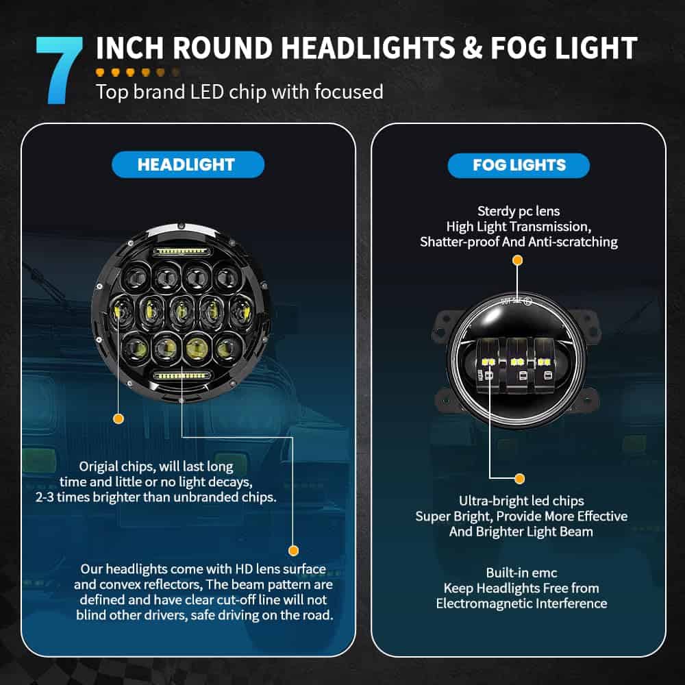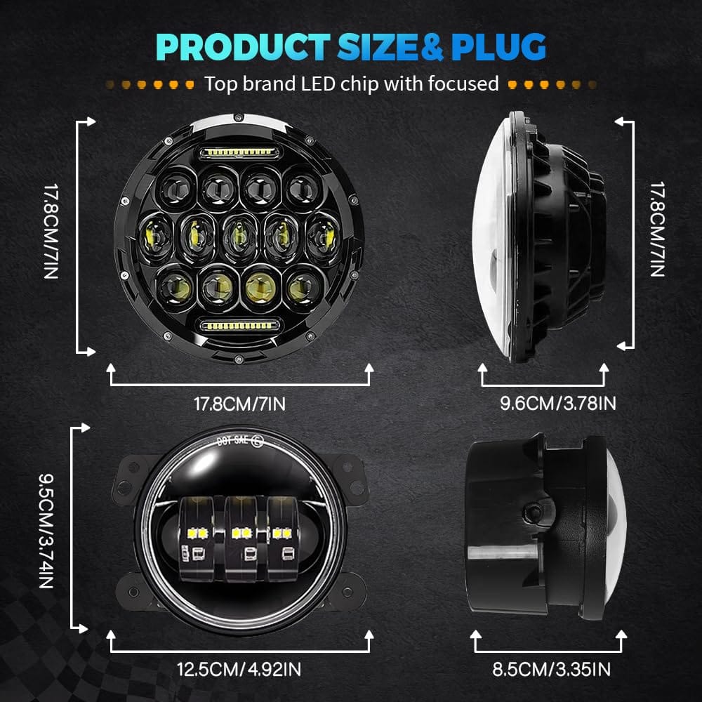 4. PAQUETE INCLUIDO: 2 x Faros LED de 7 pulgadas + 2 x Luces antiniebla LED.