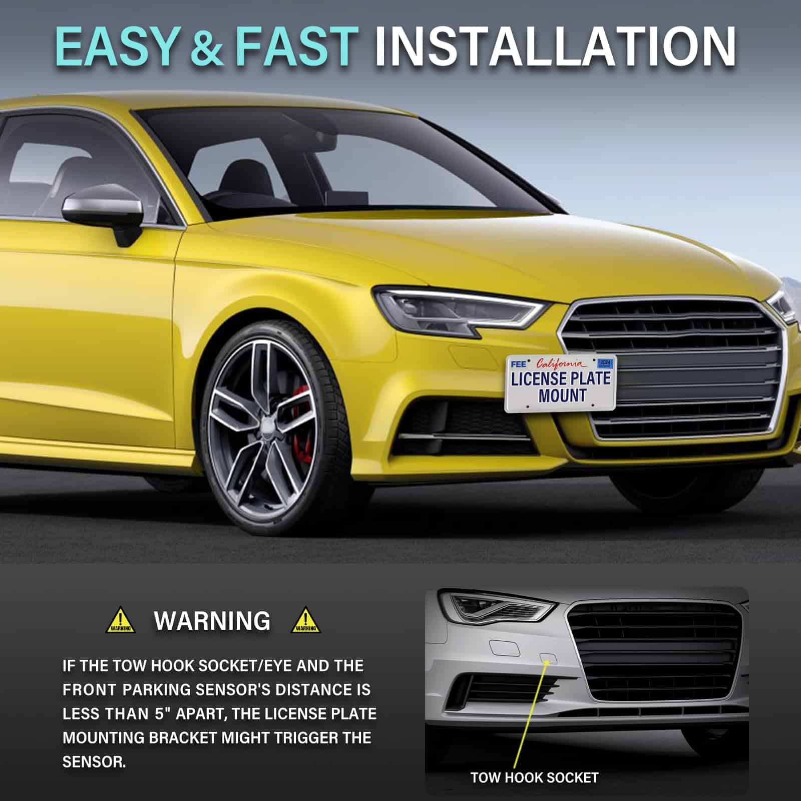 Compatible con Audi A4/S4 (modelo B8) 2008-2018, A5/S5/RS5 2008-2018 y A7/S7/RS7 2013-2018. Marco de placa de matrícula negro de alta calidad recubierto de polvo con acabado mate. No se necesita modificación, se atornilla directamente en el gancho de remolque. Soporte de placa de matrícula ajustable y giratorio para un ajuste personalizado. Diseño elegante y moderno para mejorar la apariencia de su automóvil. Accesorio de alta calidad para automóviles para una experiencia premium