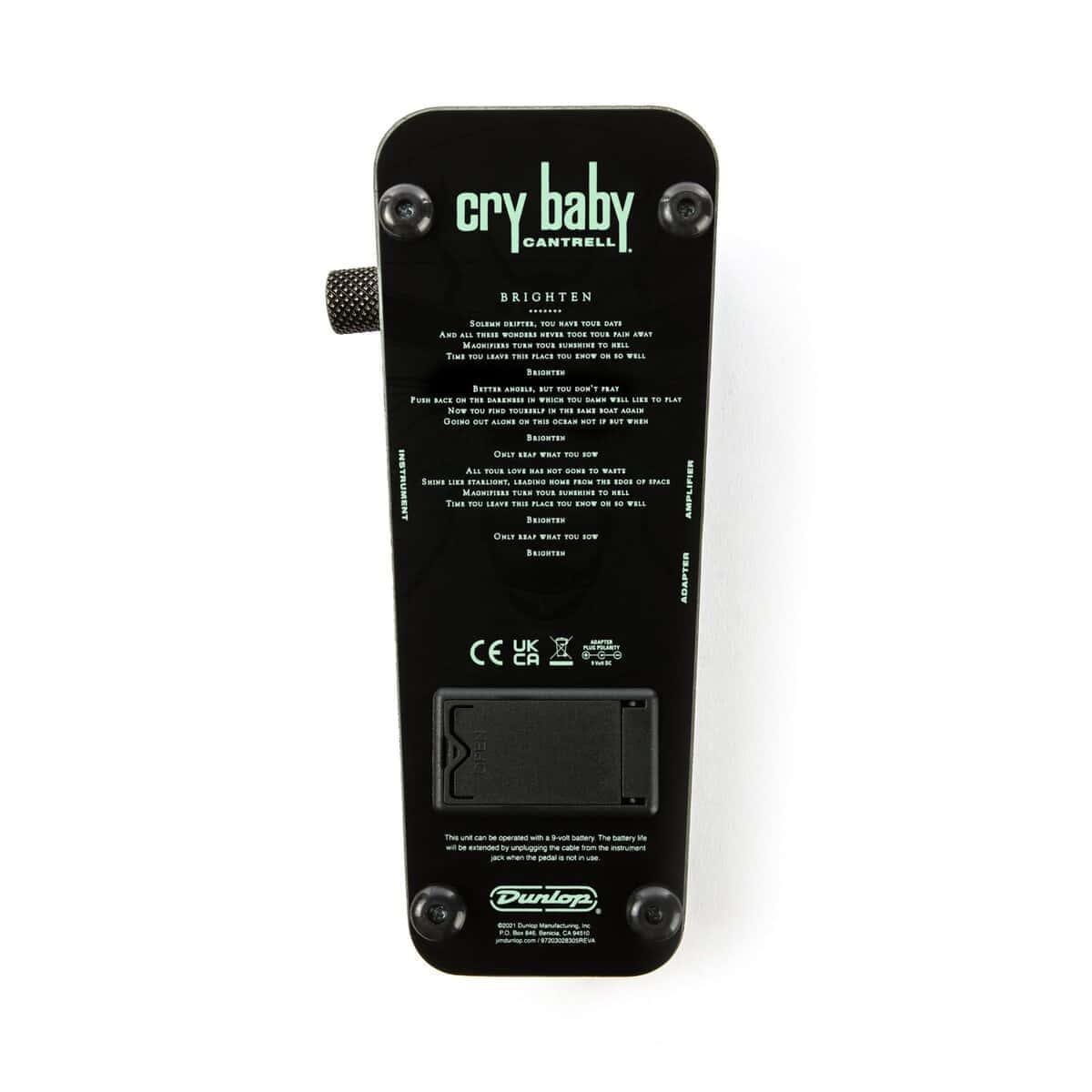 This special edition of the Jerry Cantrell Cry Baby Wah is inspired by the influential and prolific frontman s latest solo record, Brighten. Glow-in-the-dark features on the tread, front badge, and bottom plate stand out and shine in contrast with the casting s subdued raw iron finish an embodiment of the album s exploration of darkness and light. Sonically, this Cry Baby Wah is custom-voiced for a tight, punchy heel-down tone with rugged side-control knob for fine-tuning the toe-down frequency perfect for nailing Jerry s powerful wah-laden licks.