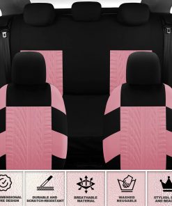 La funda para asientos está diseñada con un patrón de neumático para darle un toque diferente al interior de tu coche. Más esponja suave para que no te canses en viajes largos. Tamaño que se ajusta a la mayoría de coches, con una instalación sencilla que se puede realizar en minutos. Viene con una alfombrilla de coche para evitar la suciedad. La limpieza es muy conveniente, simplemente se puede limpiar con un paño húmedo. Incluye cubierta de volante de peluche para todas las estaciones, y cubierta para cambio de marchas. Conjunto de accesorios completo para mejorar tu experiencia de conducción.