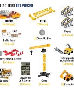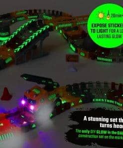 ¡Este sitio de construcción necesita líderes trabajadores! ¡Construye una pista de carreras personalizada con una variedad de increíbles obstáculos, una plétora de vehículos de construcción y para colmo una hoja completa de pegatinas temáticas de sitios de construcción que brillan en la oscuridad para hacer tu pista única! ¡Tu hijo se divertirá organizando y haciendo su efectivo super eficiente sitio de construcción de pista de carreras con muchas tareas que hacer y herramientas para completarlas. ¡Un regalo perfecto para los niños que les encanta construir, correr y hacer juegos de rol! ¡Este set de carreras viene con un sistema de pistas completamente modular, flexible y fácil de montar para que los niños pequeños, los niños y los adultos puedan poner una mano en el diseño de la pista de construcción más genial jamás creada! ¡Tu hijo desarrollará habilidades STEM esenciales como la construcción estratégica, la resolución creativa de problemas, las habilidades interpersonales y ampliará su imaginación con este épico set de carreras! ¡También puedes conectar este set con cualquier otro set de la marca JitteryGit para expandir la diversión, creando la pista más loca y la luminosa de todas!}