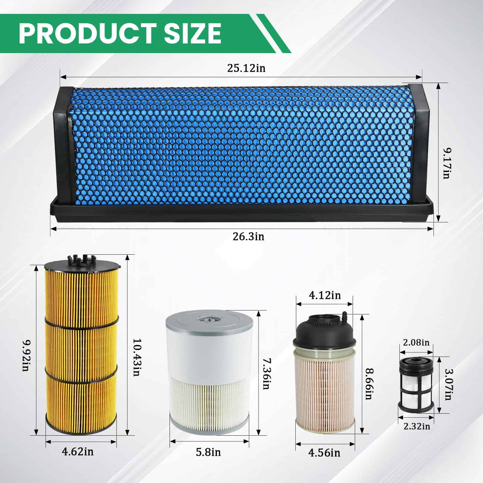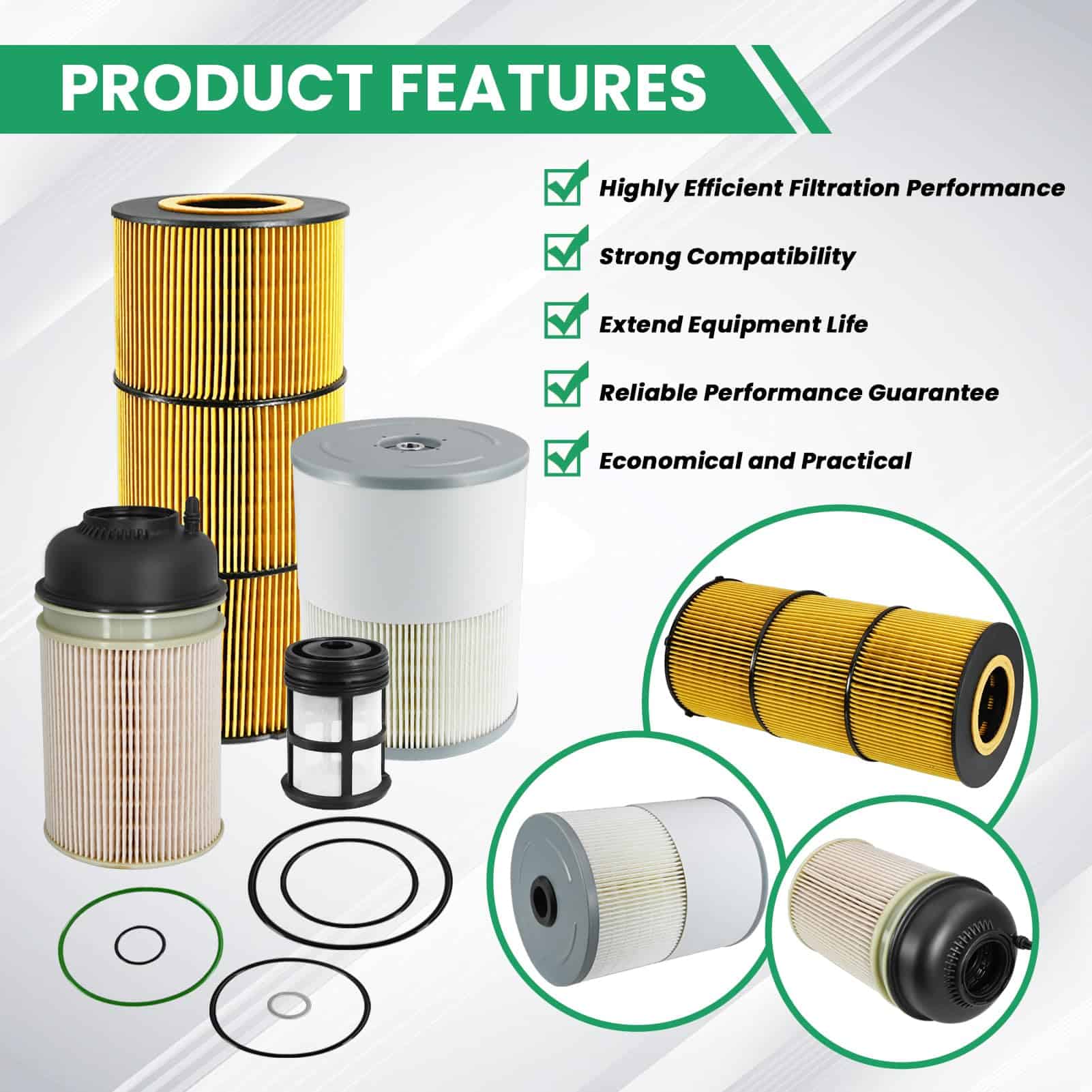 Este conjunto de elementos de filtro de alta eficiencia ofrece un rendimiento de filtración de primera clase, aislando eficazmente contaminantes del aire, aceite y combustible, reduciendo el desgaste y daño del motor. La compra de este conjunto de elementos de filtro significa menos mantenimiento frecuente y una vida útil operativa más larga. Los elementos de filtro AF27879, P551005, FS19915 y PF9908 han sido cuidadosamente diseñados para garantizar una compatibilidad perfecta con una amplia gama de equipos y vehículos, como el Motor de la Serie Freightliner Cascadia DD13 DD15 DD16. Ya sea camiones, maquinaria pesada o vehículos ligeros, todos ofrecen una coincidencia sin problemas, brindando a los consumidores más tranquilidad al tomar sus decisiones. Utilizando materiales resistentes a alta presión y alta temperatura, estos cartuchos mantienen un rendimiento estable incluso en entornos extremos. Ya sea en verano caliente o invierno frío, los consumidores pueden estar seguros de poder utilizarlos, evitando los costos adicionales asociados con el reemplazo frecuente de elementos de filtro. La función de filtración de alta eficiencia de este conjunto de cartuchos no solo mejora la eficiencia del motor, sino que también reduce las fallas del equipo causadas por impurezas, evitando costosas reparaciones y tiempo de inactividad. Ayuda a disfrutar de intervalos de mantenimiento más largos y costos de uso a largo plazo más bajos. Diseñado pensando en el usuario, el conjunto de cartuchos proporciona una instalación simple y sencilla que puede ser realizada fácilmente por el usuario. Para garantizar que nuestros clientes reciban un rendimiento consistente y confiable, realizamos un estricto control de calidad en cada cartucho de filtro. Cada producto pasa por múltiples inspecciones para garantizar que cada Kit de Filtros que compre funcione eficientemente y de manera constante