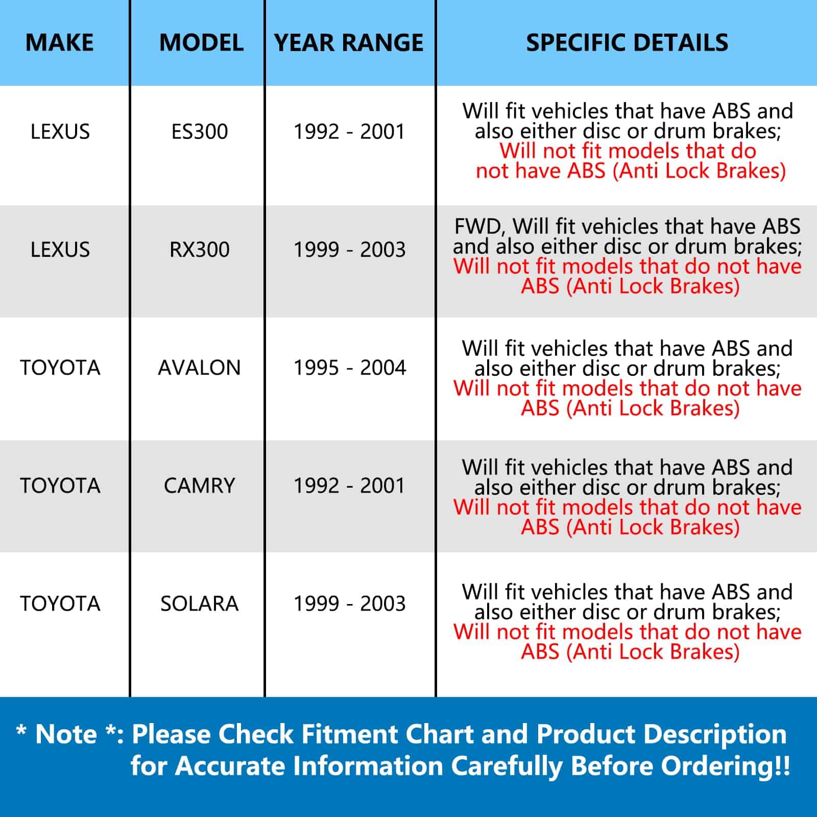 3. COMPATIBILIDAD DEL VEHÍCULO – Conjunto de Cubo de Rueda compatible con Lexus ES300 1992-2001, RX300 1999-2003 para modelos con ABS, no apto para modelos que no tienen ABS (Frenos Antibloqueo).
