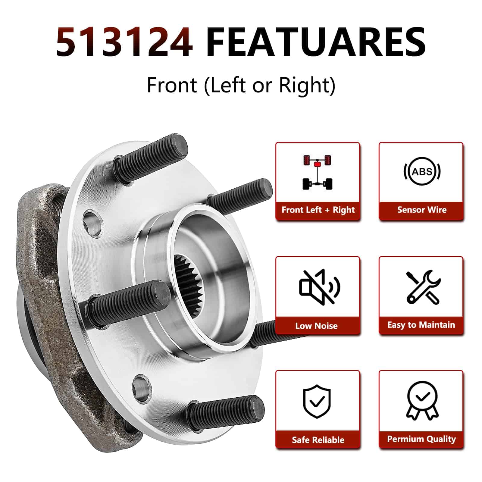 5. ESPECIFICACIONES – Conjunto de Cubo de Rueda para Posición: Izquierda y Derecha Delanteras, Perno: 5 Pernos, Tipo de ABS: Cable del Sensor, Tipo de Brida: Triangular de 3 Pernos