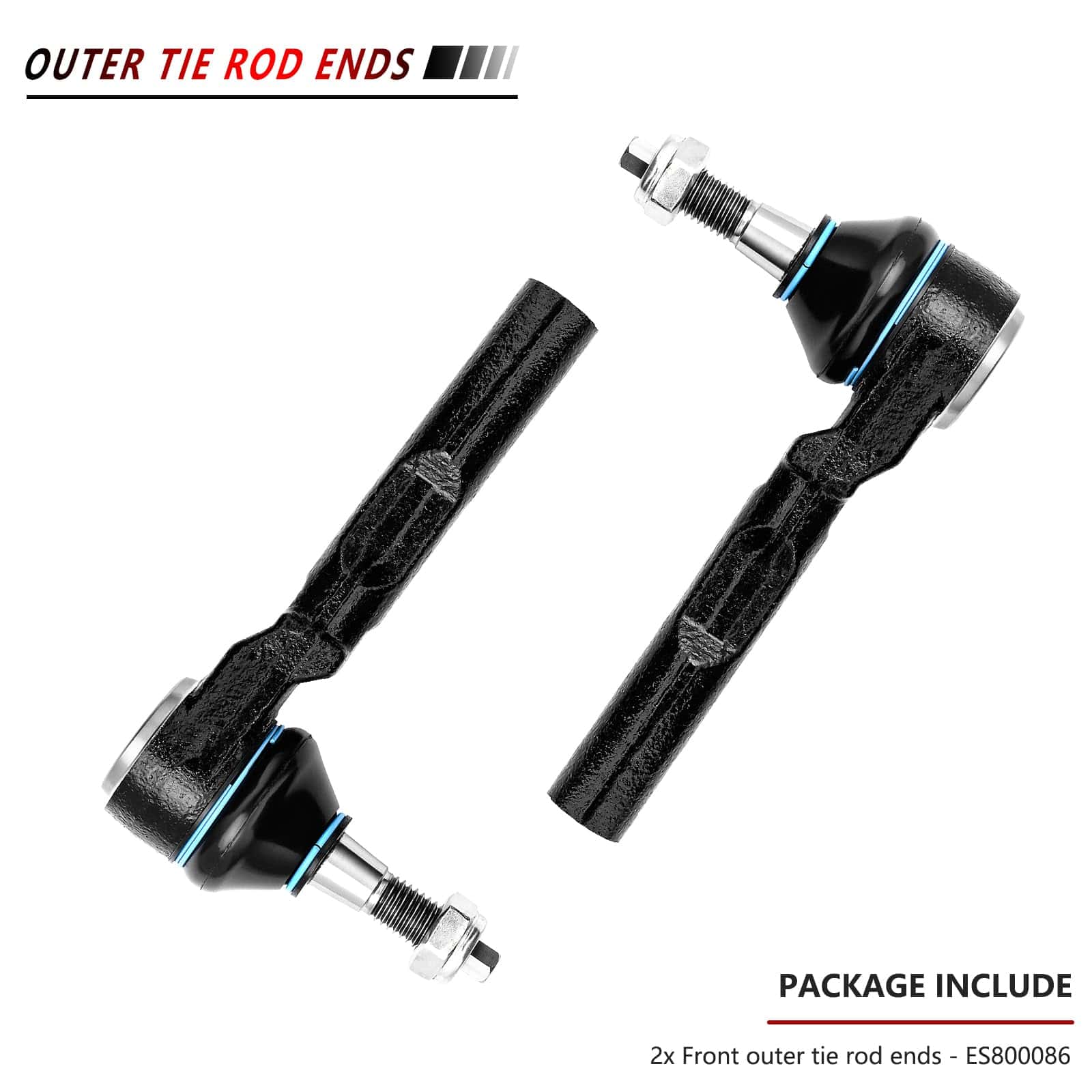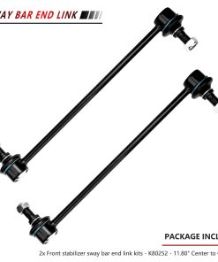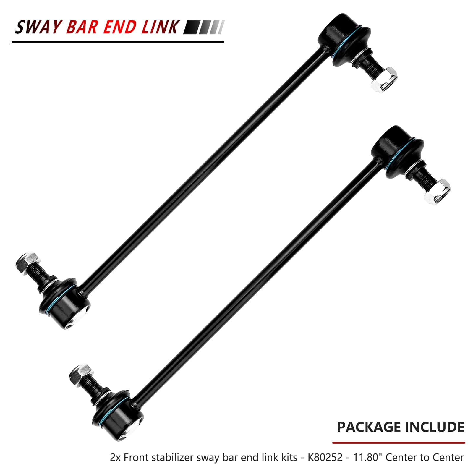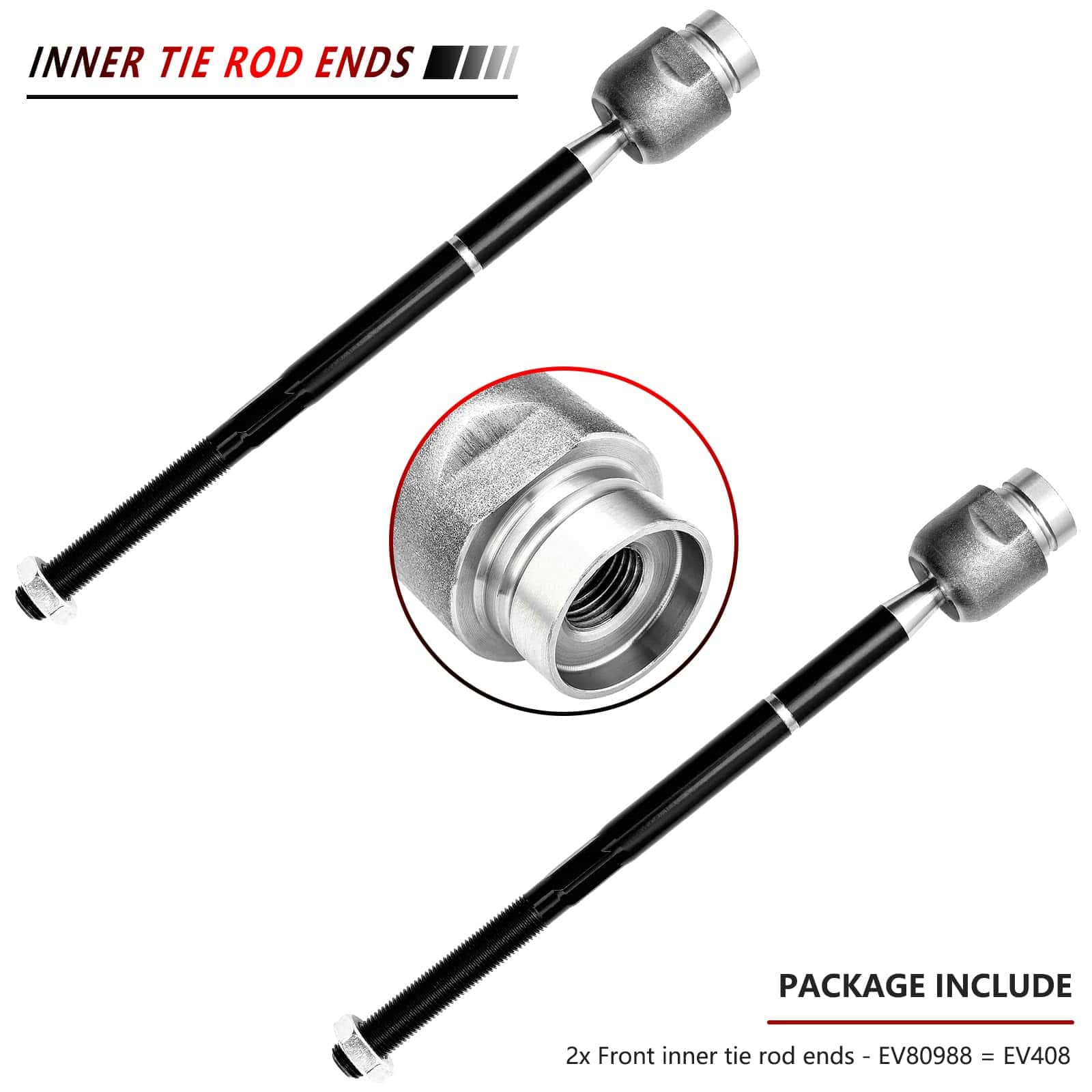 5. Paquete – 1x Brazo de control inferior izquierdo delantero + ensamble de junta de rótula – K620179, 1x Brazo de control inferior derecho delantero + ensamble de junta de rótula – K620180, 2x Kits de enlace de barra estabilizadora frontal – K80252 – 11.80″ de Centro a Centro, 2x Extremos de barra de dirección exterior delanteros – ES800086, 2x Extremos de barra de dirección interior delanteros – EV80988 EV408