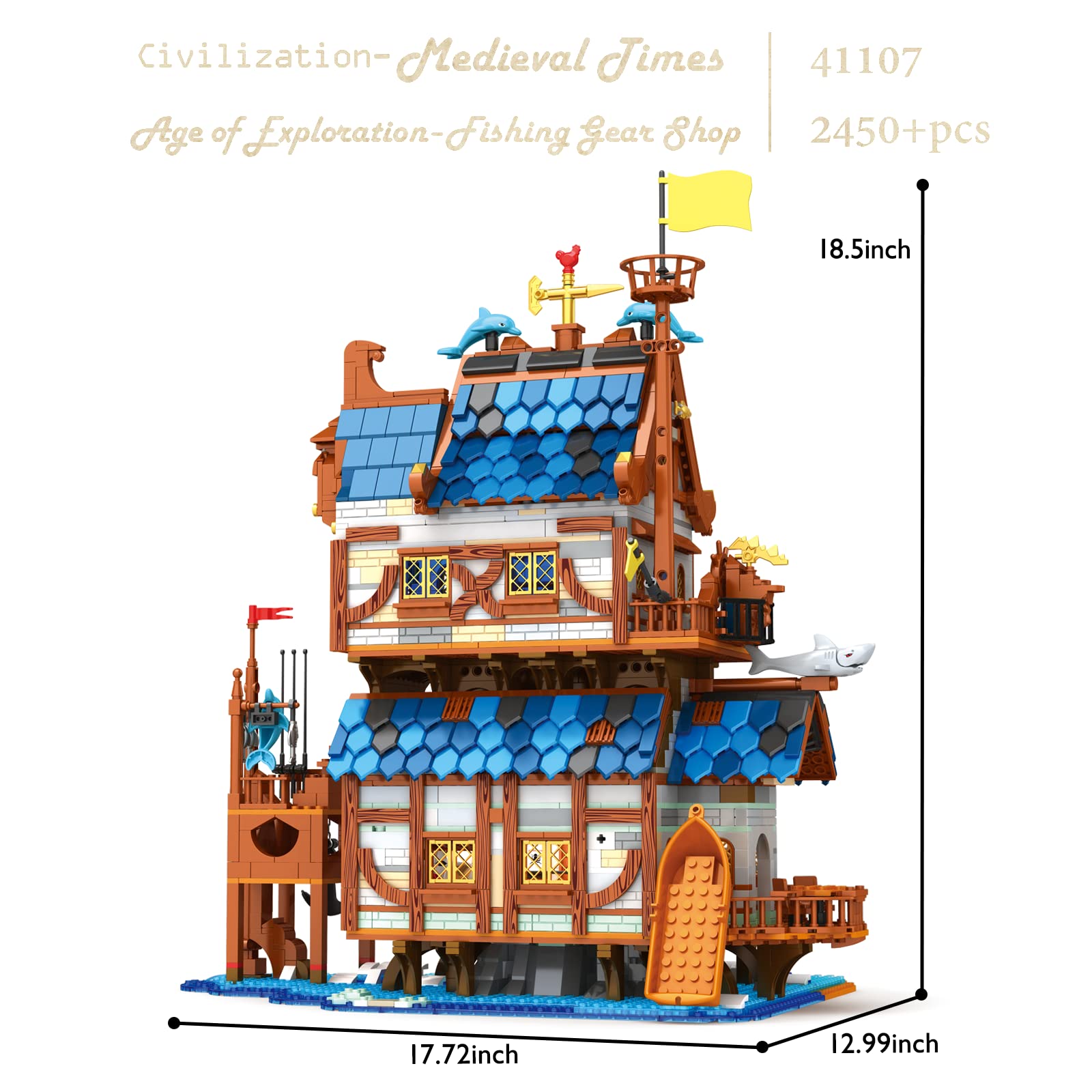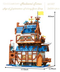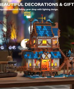 JMBricklayer Juego de construcción de tienda medieval de pesca para adultos, kit de iluminación LED Juguetes de casa de castillo creativos de la tienda de pesca Juguetes de modelo, Coleccionables o Exhibición en el hogar, Ideas de regalos para niños niñas 41107