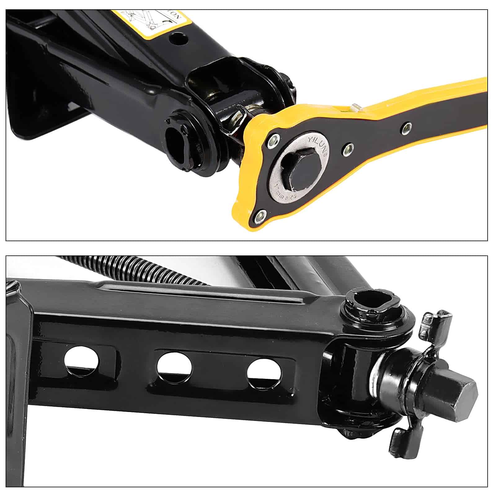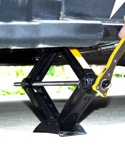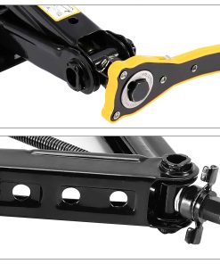 El gato de tijera para coche viene con una manija de trinquete. Puede usarla para ajustar la altura de elevación que va desde 4.1 pulgadas a 15 pulgadas.