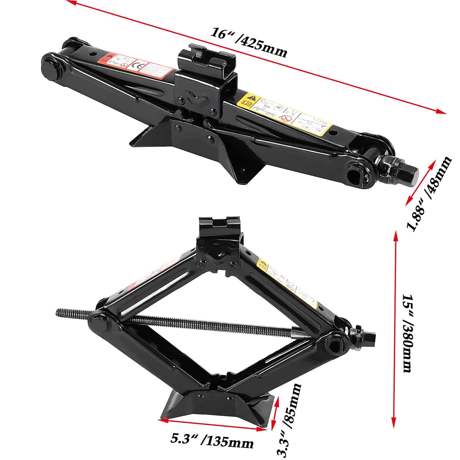 Recibirás 2 unidades de nuestros gatos de tijera y la misma cantidad de manijas de trinquete. El tamaño total del gato es de 16 x 3 x 4.13 pulgadas.