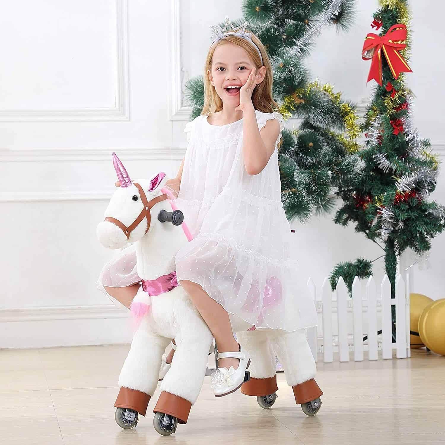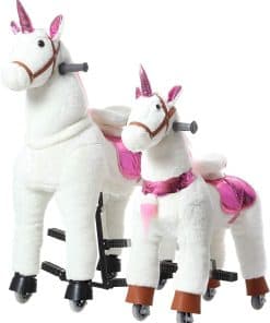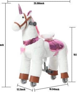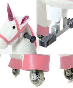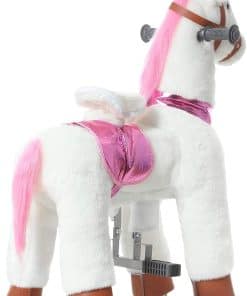 Este caballo mecanico de andar sin baterías ni eléctricidad, sino que depende de la fuerza humana. Los niños pueden montarlo como en un caballo real con movimiento de trote, incluso si ya no son niños. Todavía les encanta montarlo. Combina la característica de juguete de peluche y juguete de acción. Los niños simplemente se sientan en él con un movimiento de rebote hacia arriba y hacia abajo, el pony avanzará fácilmente. Sin el asiento elevado, los niños pueden montarlo continuamente de forma cómoda. Además, la apariencia es más similar al adorable caballo. Puedes montarlo recto o girar a la izquierda o derecha en cualquier lugar plano, como el jardín de casa, parques, plazas. Tanto los niños como los adultos se divertirán mucho con él.