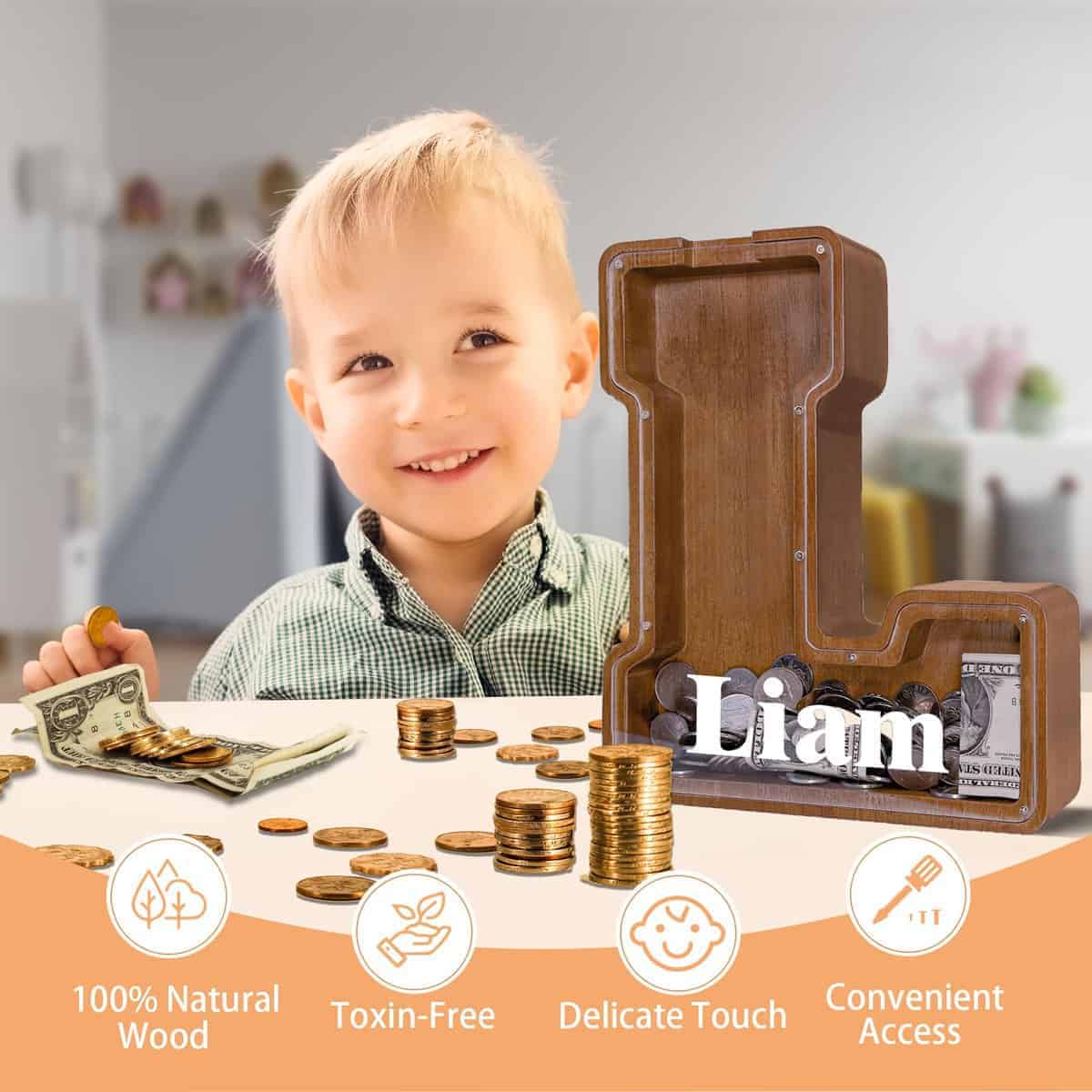 JOOMLAFLY Alcancía de Madera con Letra para Niños Alcancía