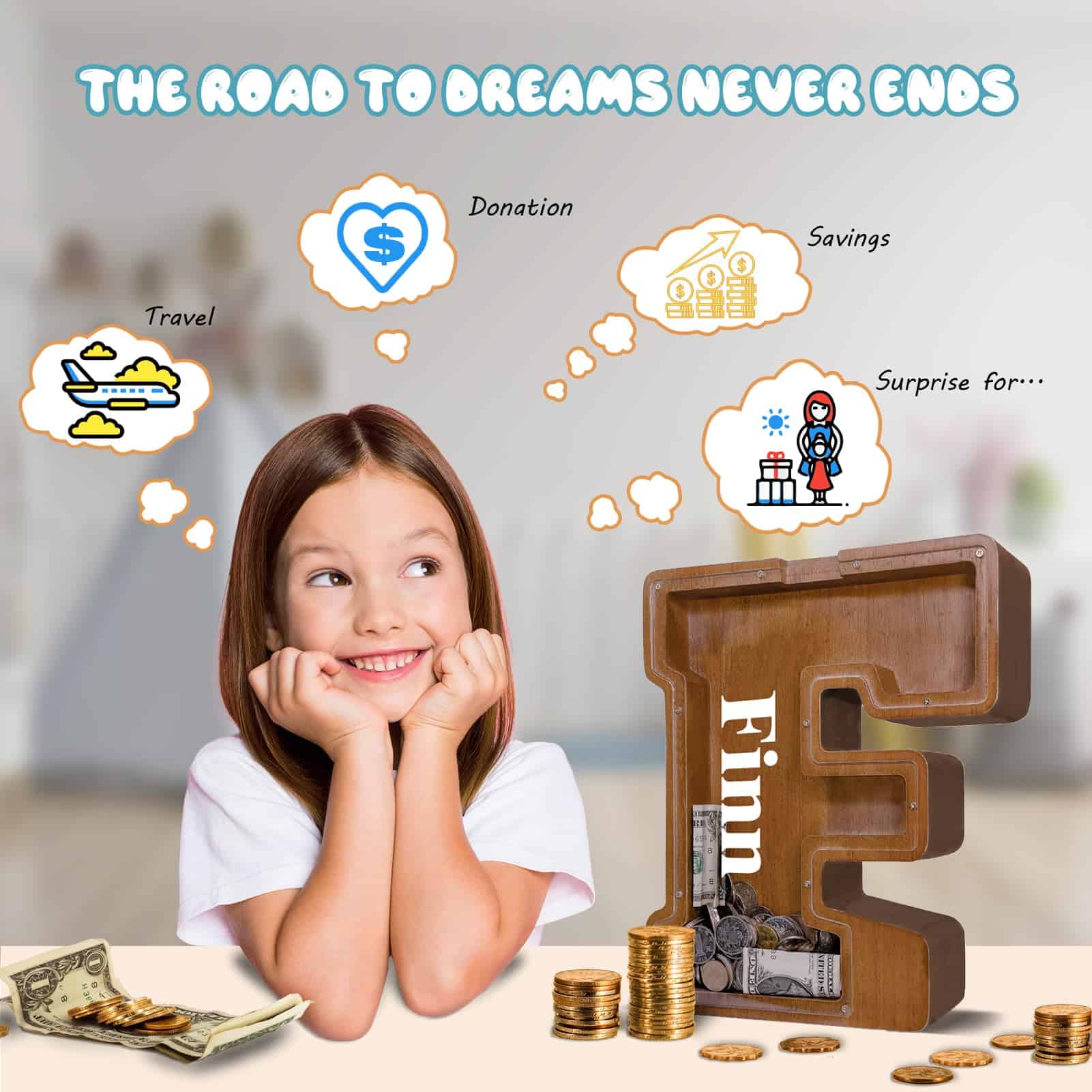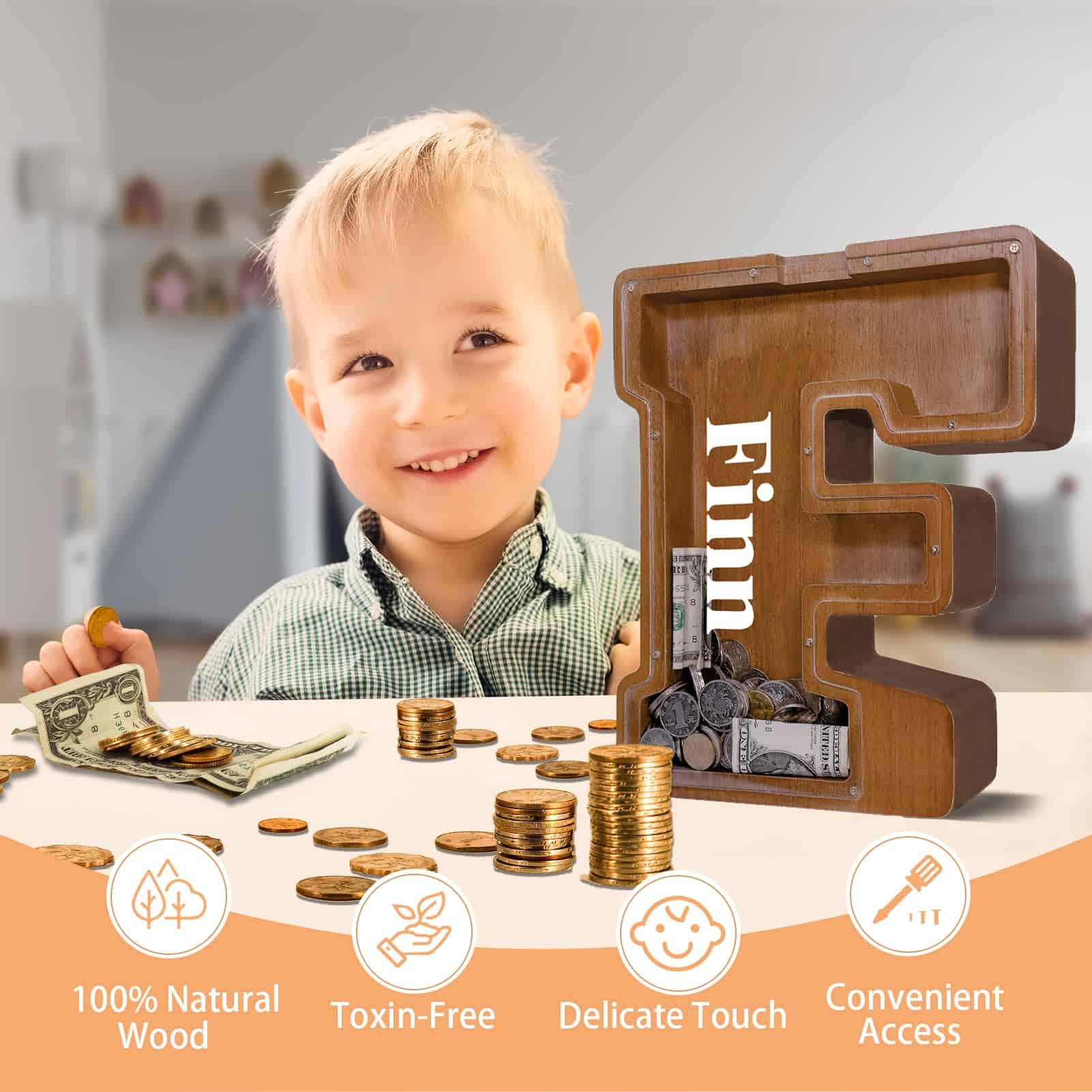 3. REGALO PERSONALIZADO ÚNICO: Más allá de elegir una hucha inicial con la inicial correspondiente para familiares o amigos, también puede personalizarla grabando mensajes únicos o nombres en la hucha de monedas de madera personalizada. El panel acrílico puede ser adornado con dibujos exclusivos utilizando marcadores a base de agua. Un regalo perfecto para niños, recién nacidos, niños y niñas de cualquier edad, para Baby Shower, Día del Niño, Regreso a Clases, Día de Acción de Gracias, Navidad, Cumpleaños, etc.