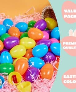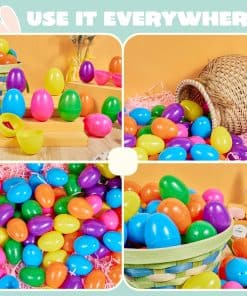 Los JOYIN 1000 PCS 2.3″ Huevos de Plástico para Pascua son perfectos para la caza de huevos de Pascua, rellenar con dulces y regalos, favores de fiesta, regalos de canasta de Pascua y premios de aula. Vienen en colores vibrantes como naranja, amarillo, verde, azul, morado y rosa, agregando diversión y emoción a cualquier evento de Pascua. ¡Haz que esta temporada de Pascua sea inolvidable con estos brillantes huevos de plástico!