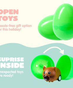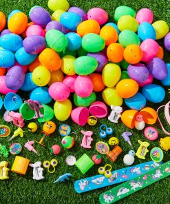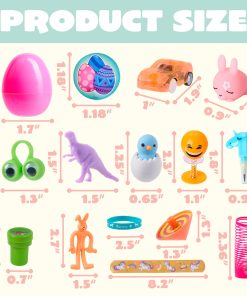 No todos los juguetes vienen mostrados en la imagen del producto, por lo que habrá aún más sorpresas por descubrir en cada huevo. Puedes usar este set para eventos de búsqueda de huevos de Pascua, suministros de fiesta, rellenos de canasta de Pascua, premios de fiesta, truco o trato, recompensas de la clase de la escuela, regalos, juguetes novedosos miniatura, bolsas sorpresa y muchos más.