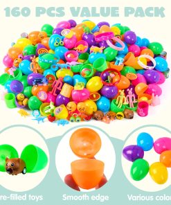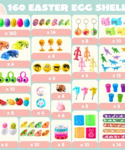 JOYIN 160 PCS Huevos de Pascua Rellenos con Juguetes Variados es el conjunto perfecto para cualquier evento de Pascua. Cada huevo viene relleno con un juguete y una calcomanía de Pascua, lo que garantiza sorpresas emocionantes para los más pequeños. Con una variedad de juguetes premium como calcomanías, juguetes de resorte, coches de juguete de retroceso, ojos móviles divertidos y dinosaurios, este paquete tiene todo lo necesario para hacer que la Pascua sea inolvidable.