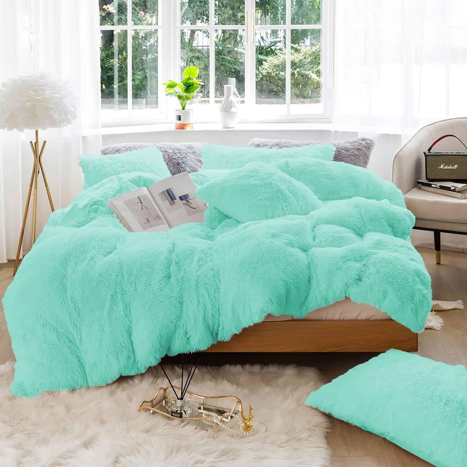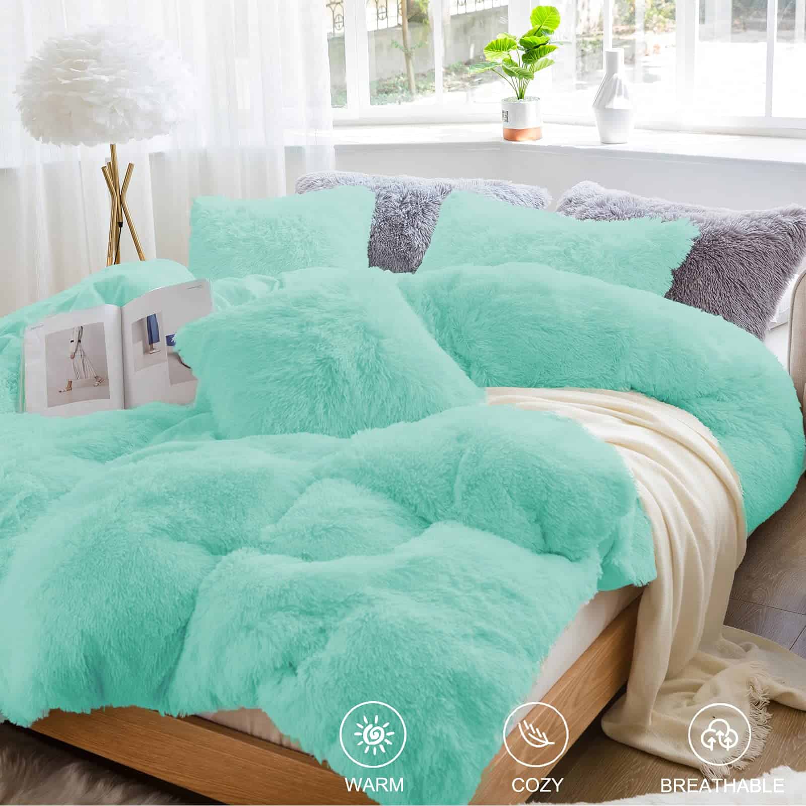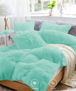 Super Suave y Esponjoso Juego de Funda de Edredón Largo de Piel Sintética de Lujo utiliza una lujosa colección de material de terciopelo esponjoso, y sentirás la excepcional calidez y comodidad cuando te deslices en la ropa de cama. Este juego de funda de edredón será el complemento perfecto y elegante para cualquier dormitorio.