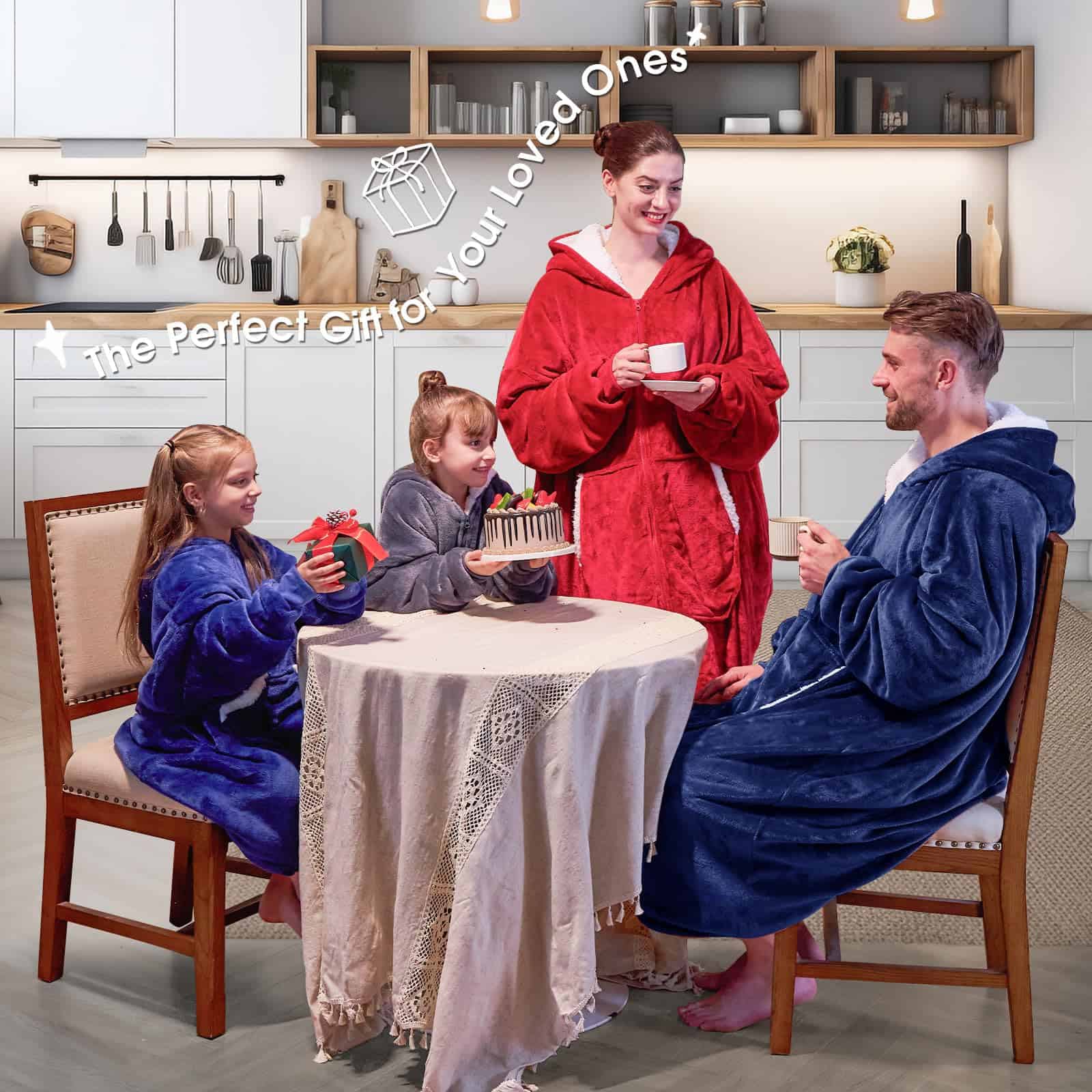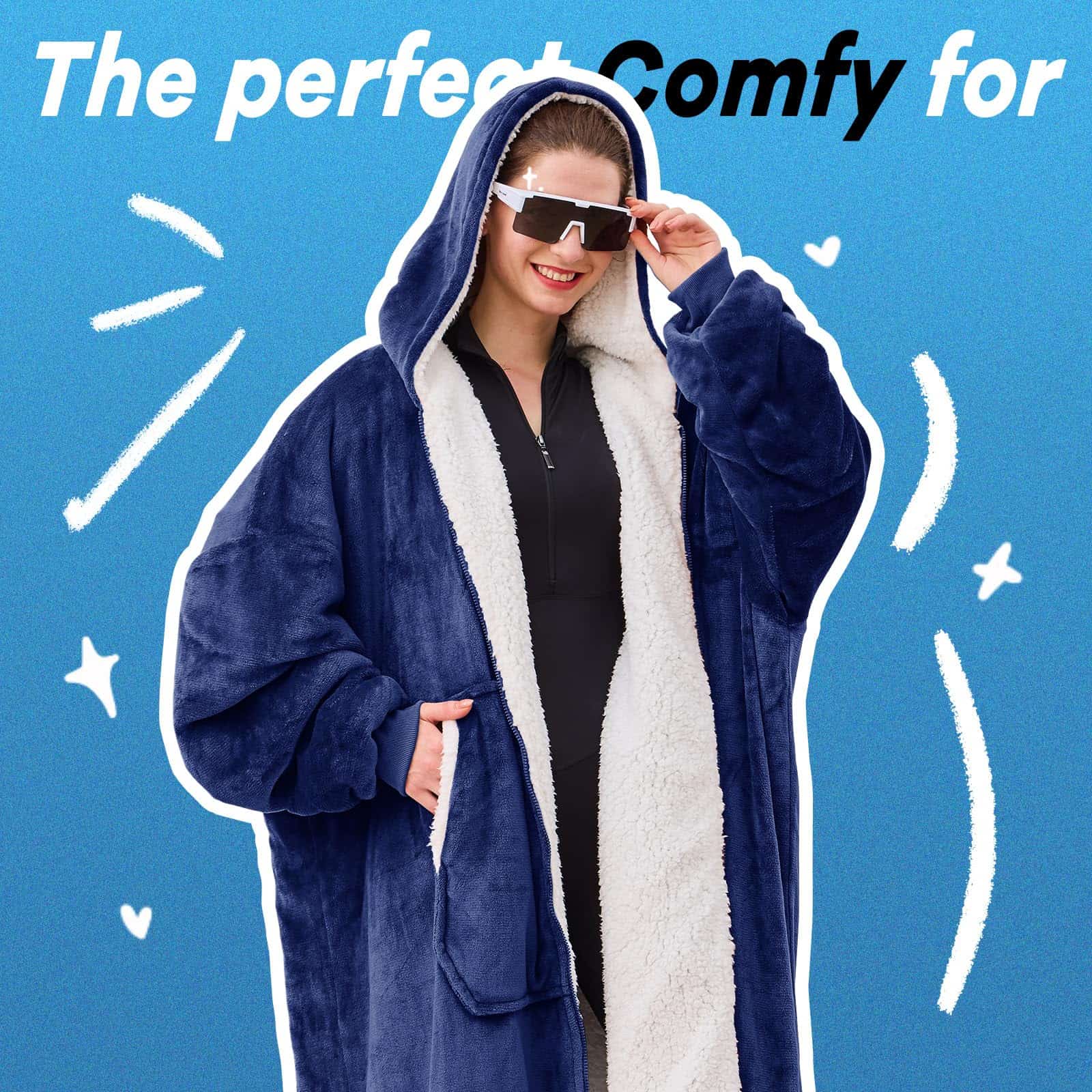 La manta con capucha JOYWOO es el regalo perfecto para cualquier ocasión especial. Viene en un elegante empaque que lo hace ideal para regalar en Halloween, Día de Acción de Gracias, Navidad y San Valentín. Diseñada con 3 tamaños diferentes para adaptarse a todos los usuarios, después de un análisis exhaustivo de más de 20,000 datos de diferentes tamaños corporales. Fabricada con materiales de alta calidad como sherpa y franela, esta manta con capucha es cálida, suave y acogedora. Su diseño único la hace ideal para exteriores como barbacoas, campamentos o para uso en interiores como en la escuela o en casa. Con un diseño grueso y alargado, esta manta con capucha cubrirá perfectamente desde tus rodillas hasta tus tobillos, proporcionando una sensación de calidez y comodidad óptima. Con bolsillos gigantes y capucha, esta manta es práctica y funcional, permitiendo guardar objetos e incluso a tu mascota. La cremallera añade un toque moderno y facilita su uso, mientras que los ajustes científicos a la longitud de las mangas y otros detalles garantizan una experiencia cómoda para el usuario. Además, su diseño reforzado y resistente garantiza durabilidad y facilidad de cuidado. Simplemente lávela a máquina o a mano y luego séquela a baja temperatura para mantenerla en perfecto estado. Disfruta de la comodidad y calidez de la manta con capucha JOYWOO en cualquier momento y lugar.