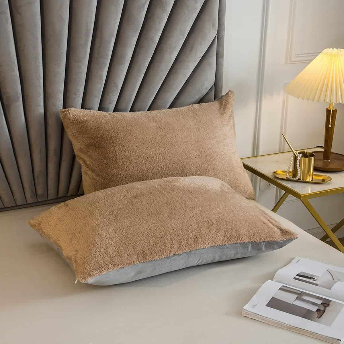 JSZS Juego de Funda de Edredón de Felpa -Caqui