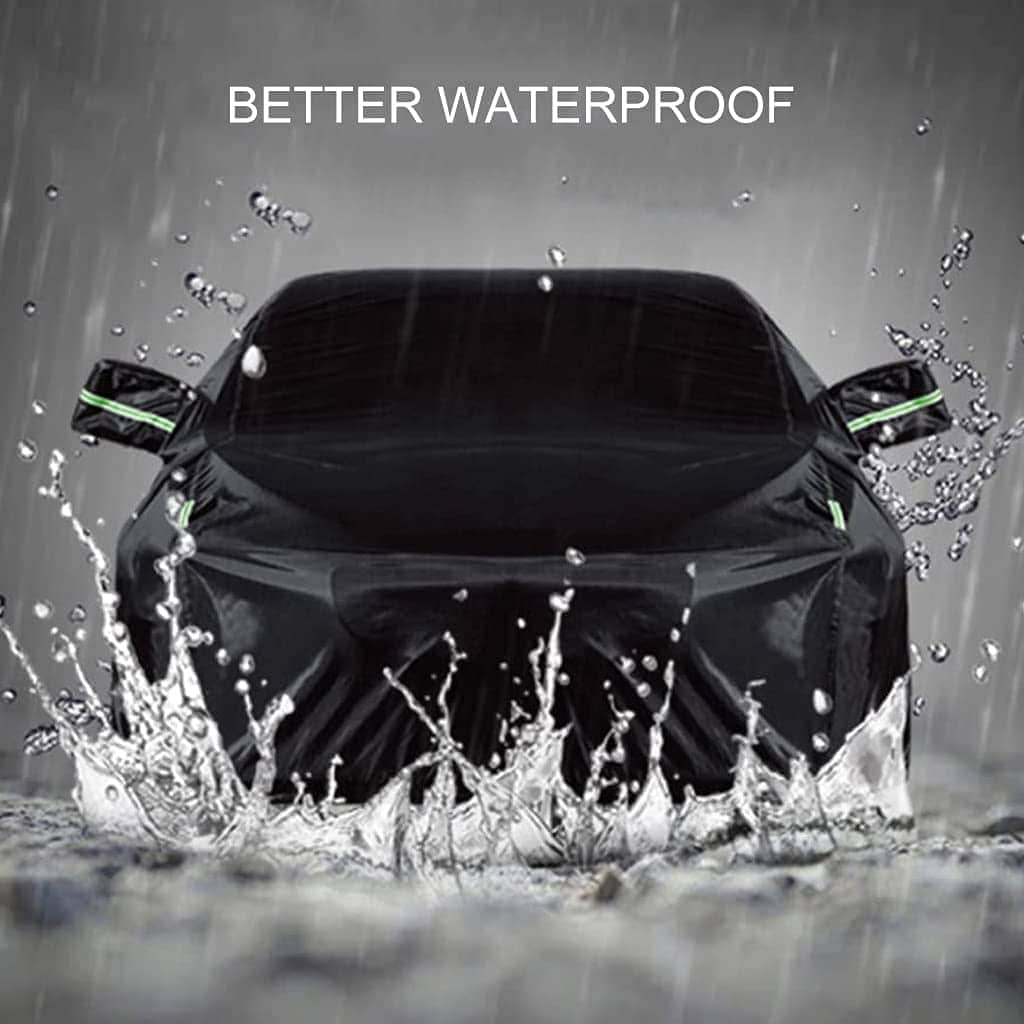 2. Material: Las fundas de coche impermeables para todas las estaciones de JTEDZI están hechas de tela Oxford resistente al agua y rasgaduras. El interior de la Funda de Coche con Algódon está construido con algodón de alta densidad, que no causará daños a la pintura. La Funda de Coche Negra Impermeable para Automóviles tiene una bolsa de almacenamiento para un fácil guardado y transporte. Las Cubiertas de Coches también pueden ser regaladas a familiares o amigos. Preferible para uso interior y exterior.