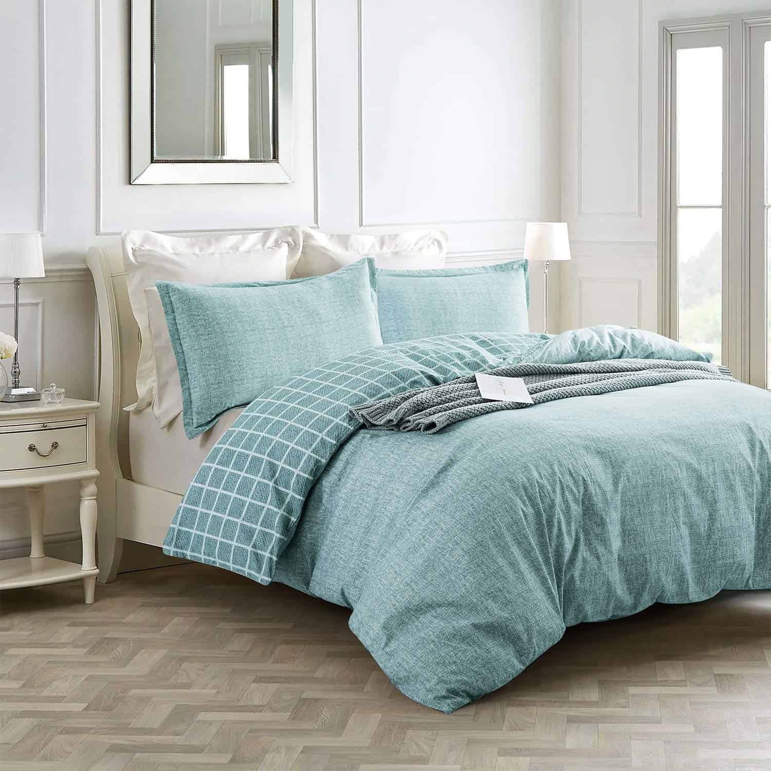 JUCFHY Home se enorgullece de la sencillez indulgente con detalles inspiradores y ha ofrecido soluciones de ropa de cama premium para llevar más sofisticación y calidez a millones de personas en todo el mundo. Y, lo que es aún más importante, hemos establecido nuestra misión no solo para ofrecer la ropa de cama más suave, acogedora y cómoda del mercado, sino también para construir tu hogar de ensueño «más que comodidad». Aporta una sensación relajada a tu cama con este juego de funda de edredón 100% de algodón premium. Te ofrecemos un look elegante, atractivo, atemporal, asequible y de confort diario. Estos juegos de funda de edredón combinan fácilmente con el estilo de tu dormitorio. Nuestro juego de funda de edredón está hecho de tejidos de algodón puro 100 por ciento suaves, transpirables, duraderos y cómodos. Los colores se mantendrán fieles con múltiples lavados según nuestras instrucciones de lavandería. Estos juegos de funda de edredón tienen cierre con botones para una fácil inserción y extracción. Cada esquina de las fundas de edredón tiene lazos internos para asegurar tu edredón. Las fundas de almohada tienen una abertura superpuesta, fácil y conveniente de usar. Dimensiones: Tamaño Twin Incluye: 1 funda de edredón 68 x 92 pulgadas, 1 funda de almohada 20×26 pulgadas. Tamaño Queen Incluye: 1 funda de edredón 90 x 90 pulgadas, 2 fundas de almohada 20×26 pulgadas. Tamaño King Incluye: 1 funda de edredón 104 x 90 pulgadas, 2 fundas de almohada 20×36 pulgadas. Garantía: